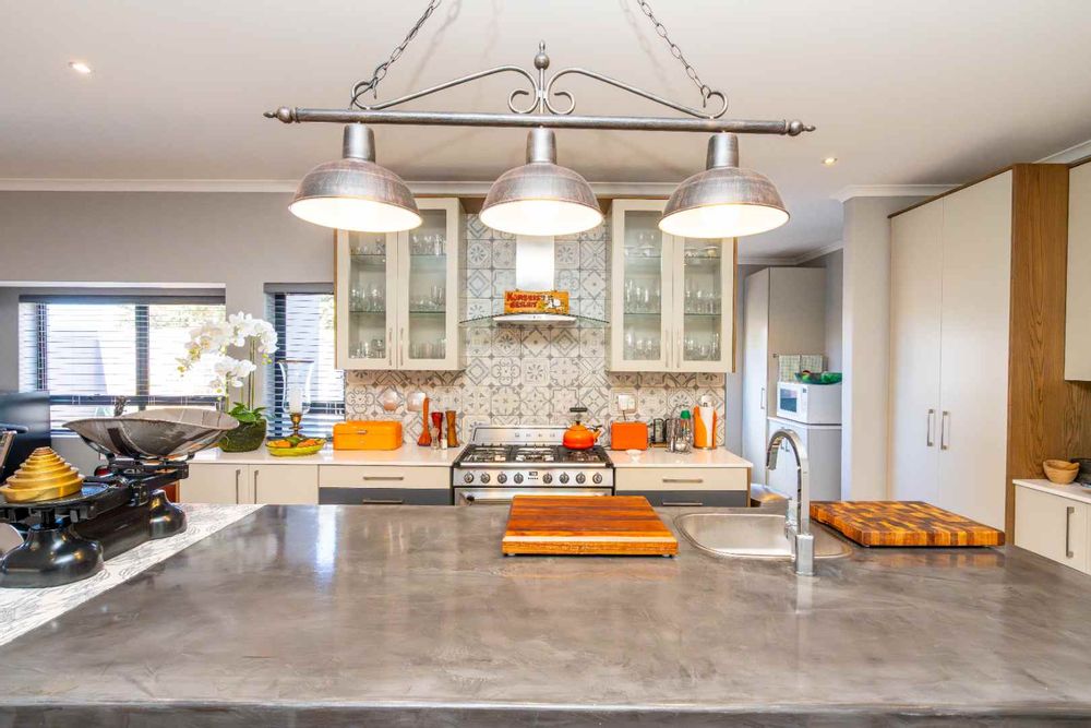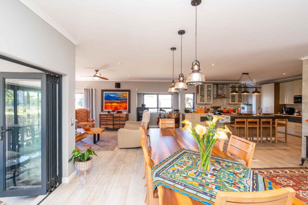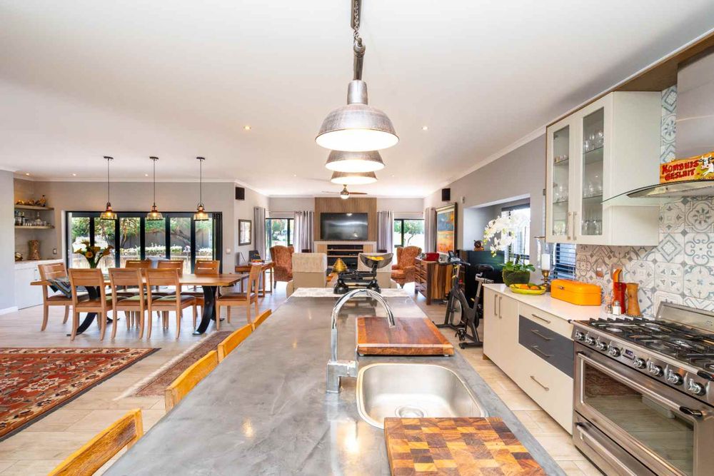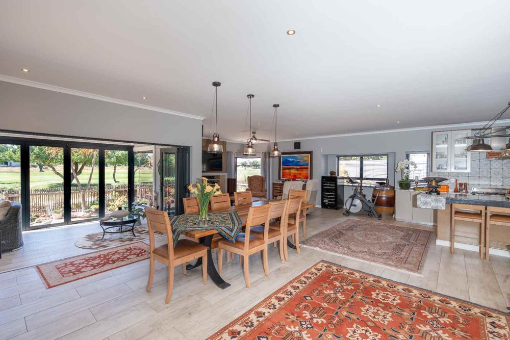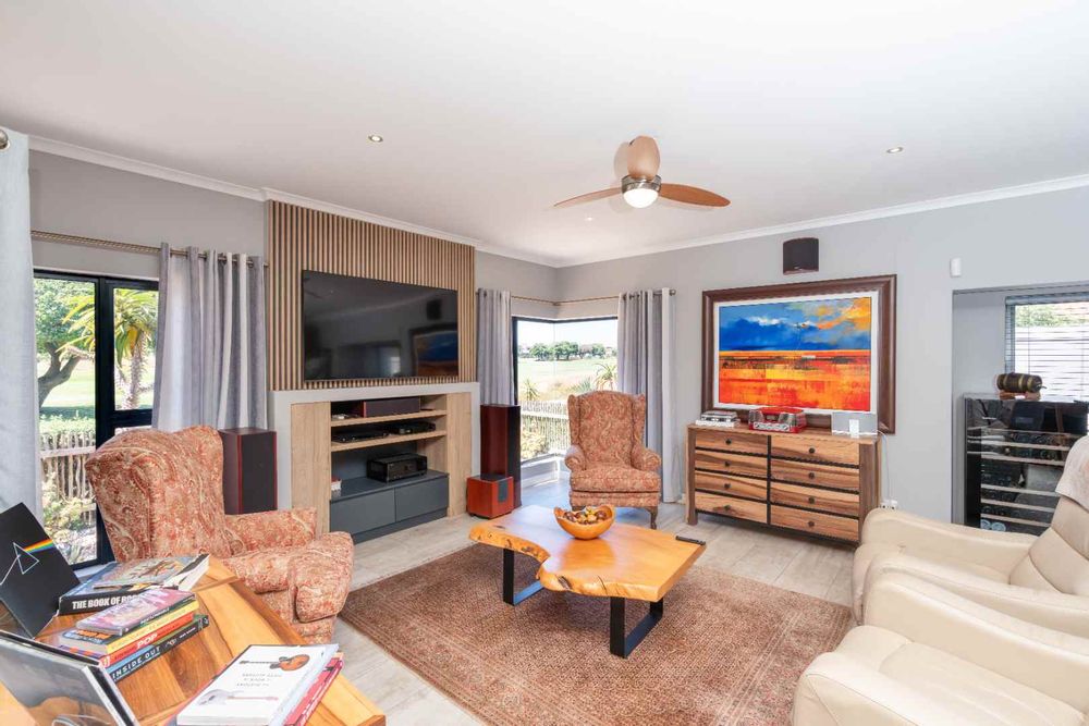 Imagine waking up in a sun-filled, north-facing home with panoramic views of the 16th fairway. This 3-bedroom, 2-bathroom retreat blends modern elegance with effortless comfort, from the gourmet kitchen featuring a SMEG Victoria stove and central island to the open-plan lounge with a cozy wood-burning fireplace and indoor braai—perfect for entertaining or quiet evenings at home.