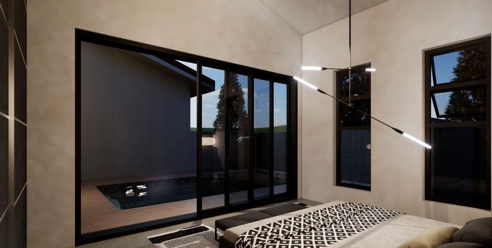 Bedroom 2 opens onto composite decking surrounding the future pool area, with plumbing already provided.