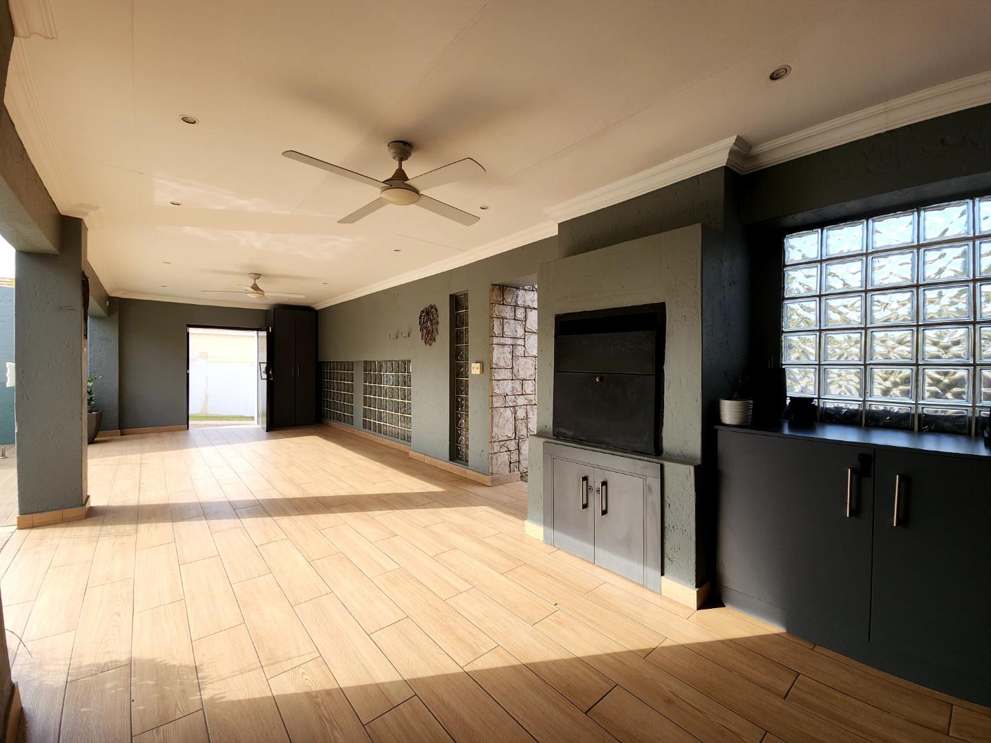 Second living area leads to a huge covered patio with a built-in braai, perfect for year-round entertaining