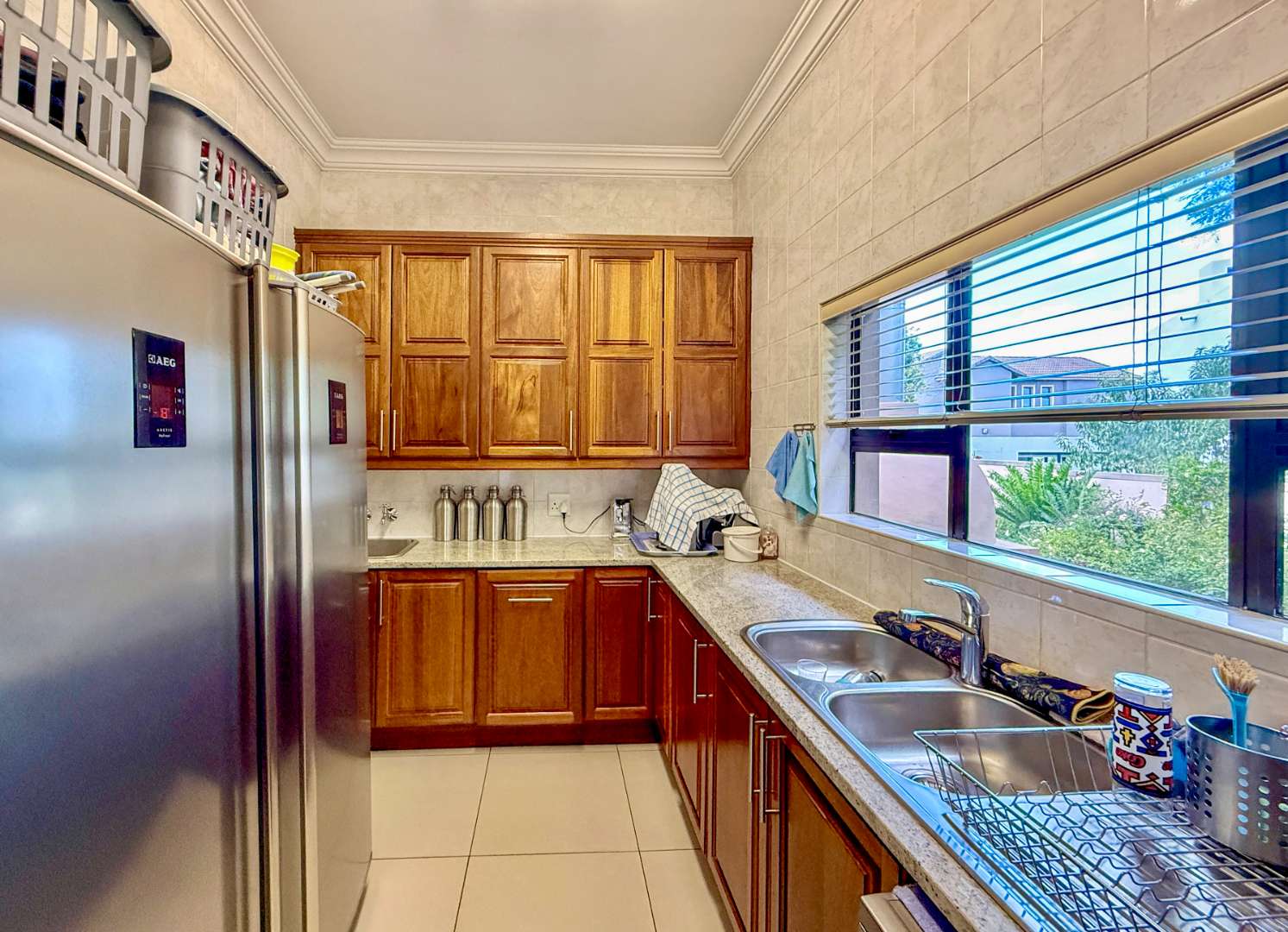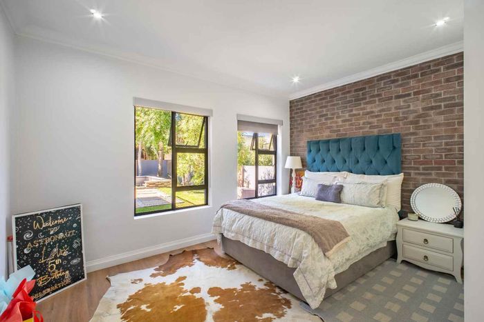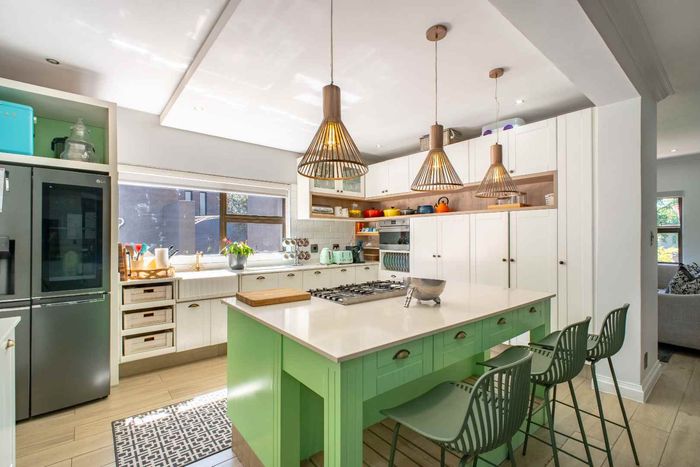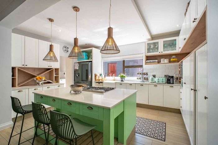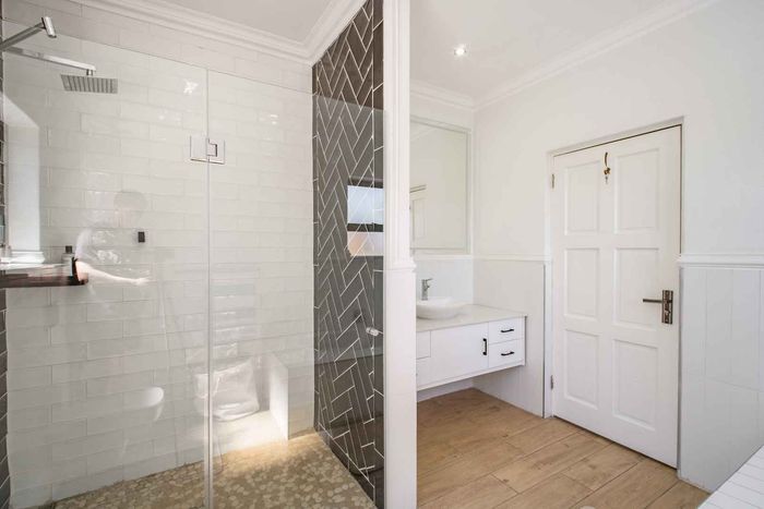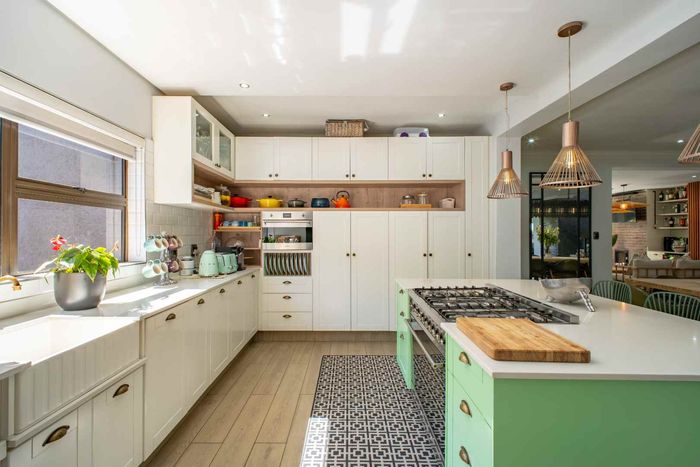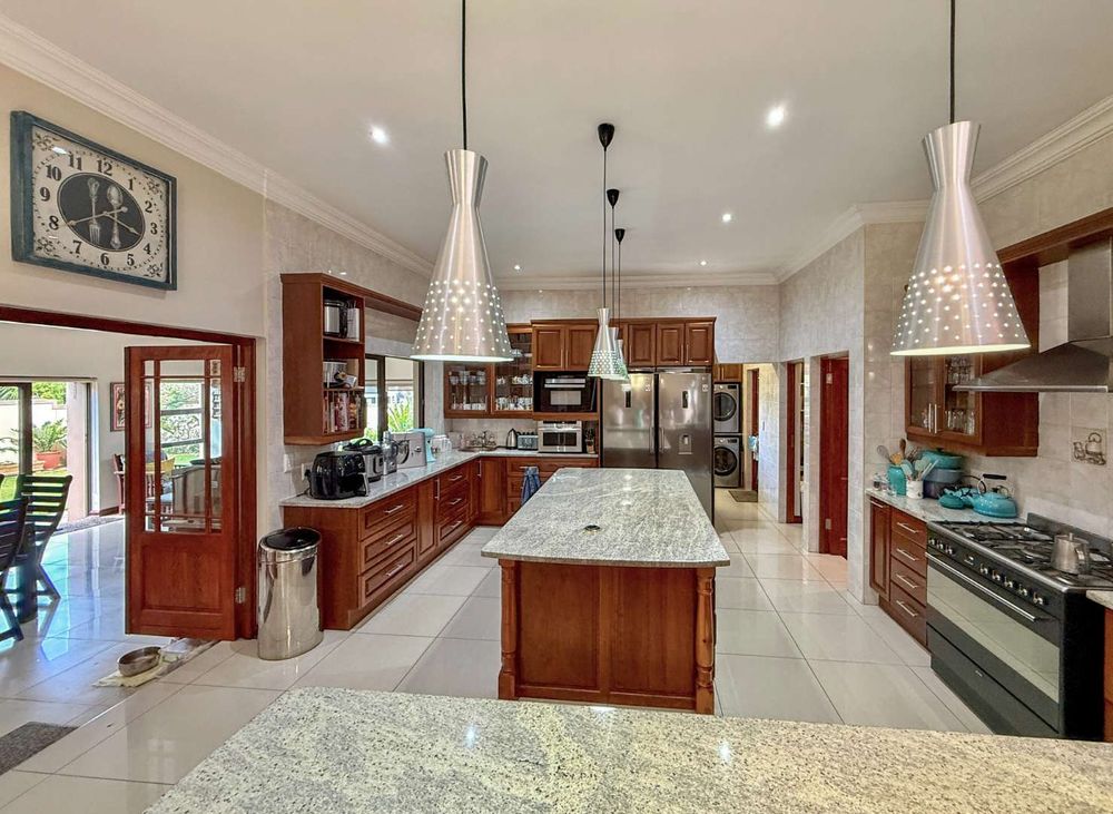 At the heart of the home, the beautifully appointed kitchen is both stylish and practical, featuring a gas stove, solid wood cabinetry, and quality craftsmanship in every detail. The kitchen flows effortlessly into the indoor-outdoor entertainment area, complete with a built-in braai and pizza oven, an inviting space designed for effortless year-round entertaining.