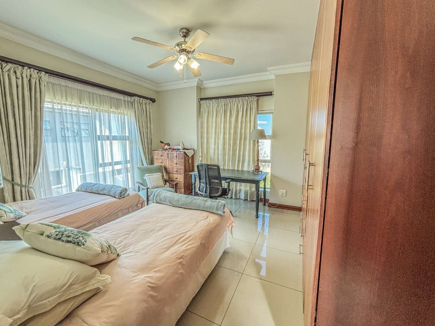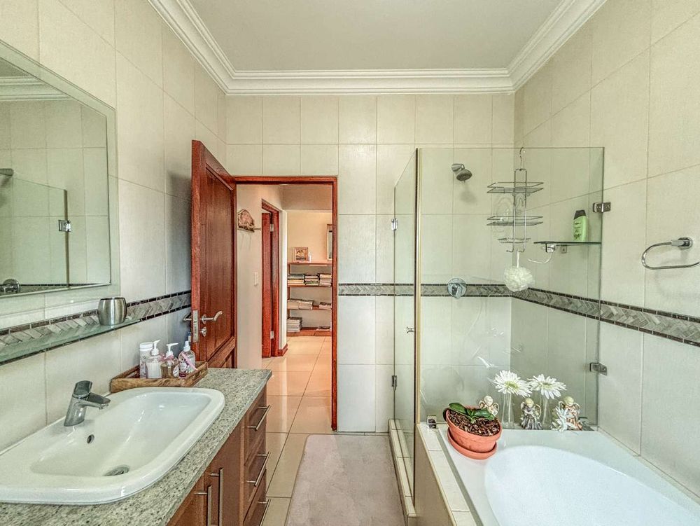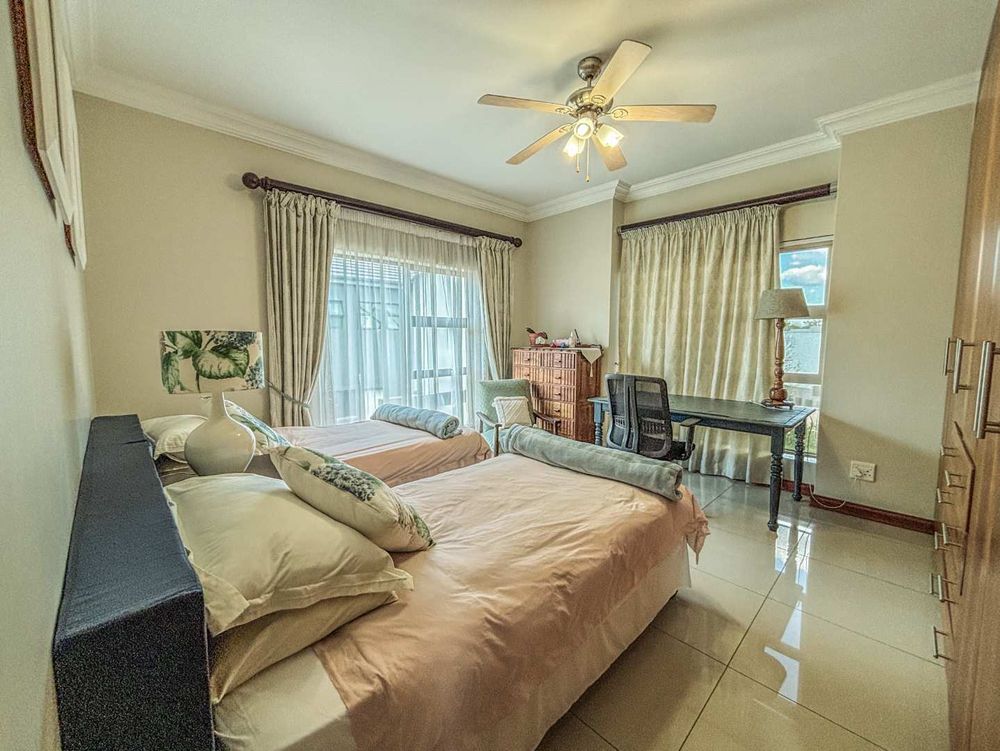 The living areas are abundant and versatile, offering two spacious lounges as well as a pajama lounge that can easily serve as a study or even a fifth bedroom. The accommodation includes five well sized bedrooms and 3.5 bathrooms. A standout feature is the adaptable fourth bedroom wing, which can function as a private flatlet with its own lounge and outdoor access, ideal for extended family, guests, or independent living.