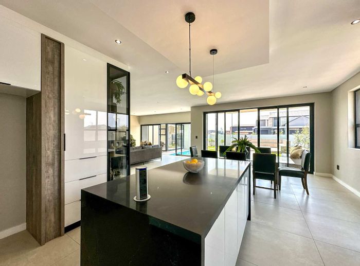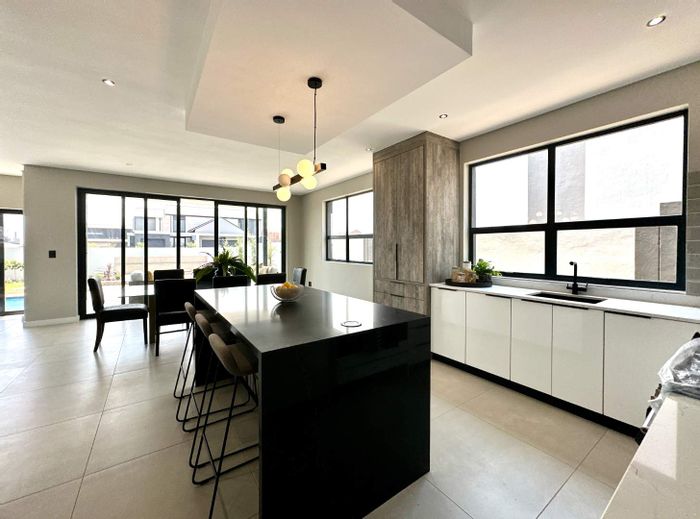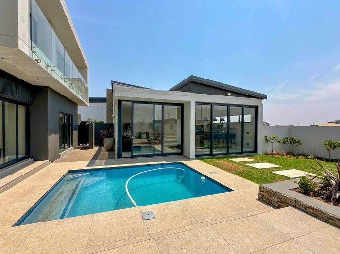 Perched on a sprawling 1000m2 stand, this modern marvel will feature expansive open-plan living, a private cinema, an entertainment lounge, a covered patio with built-in braai, and a sparkling pool, all designed for effortless indoor-outdoor flow and unforgettable moments.
