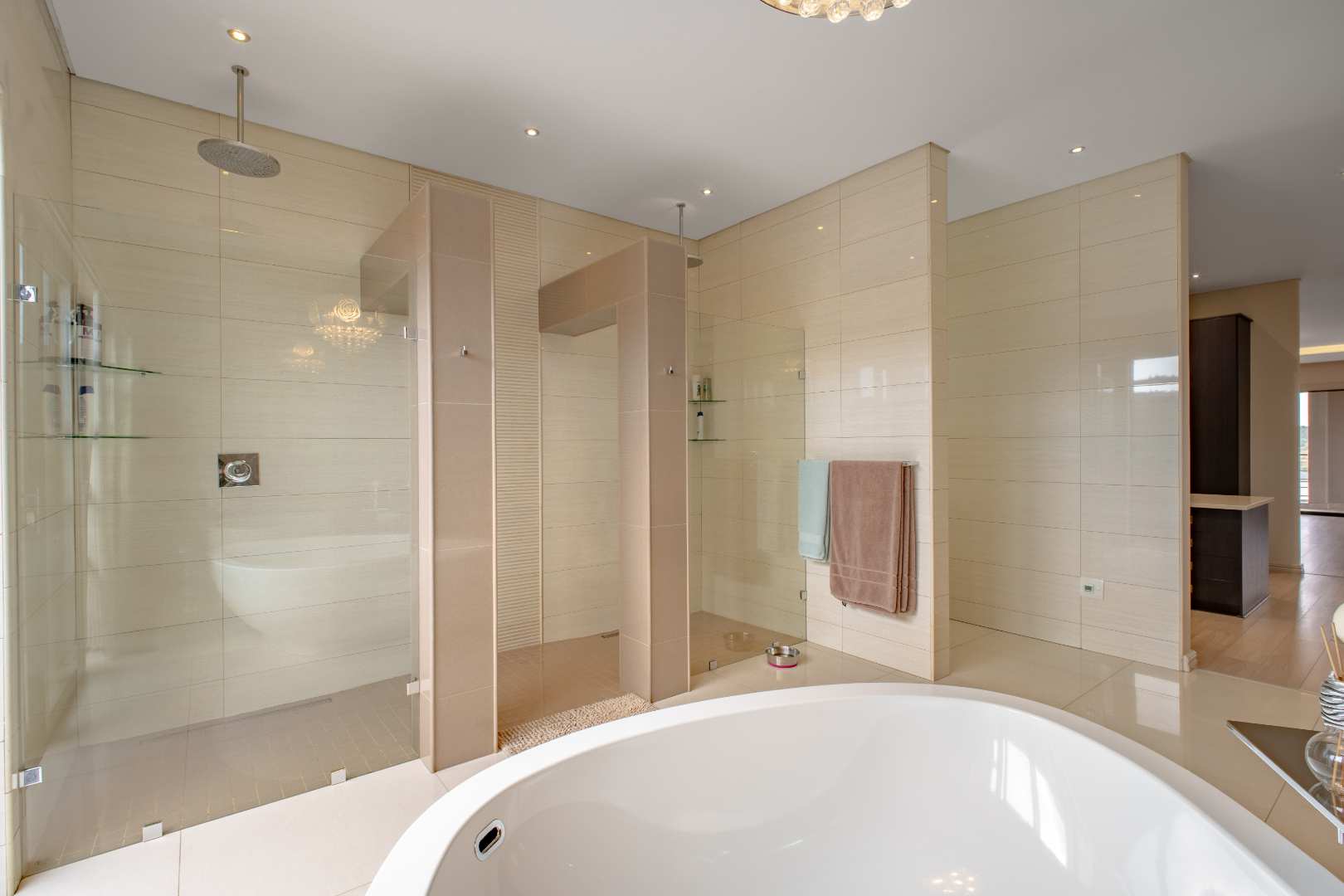 - The massive main bedroom includes a gas fireplace, private balcony, expansive dressing room, and a lavish en-suite with top-of-the-range Hansgrohe bath, taps, double showers, and an outdoor shower.