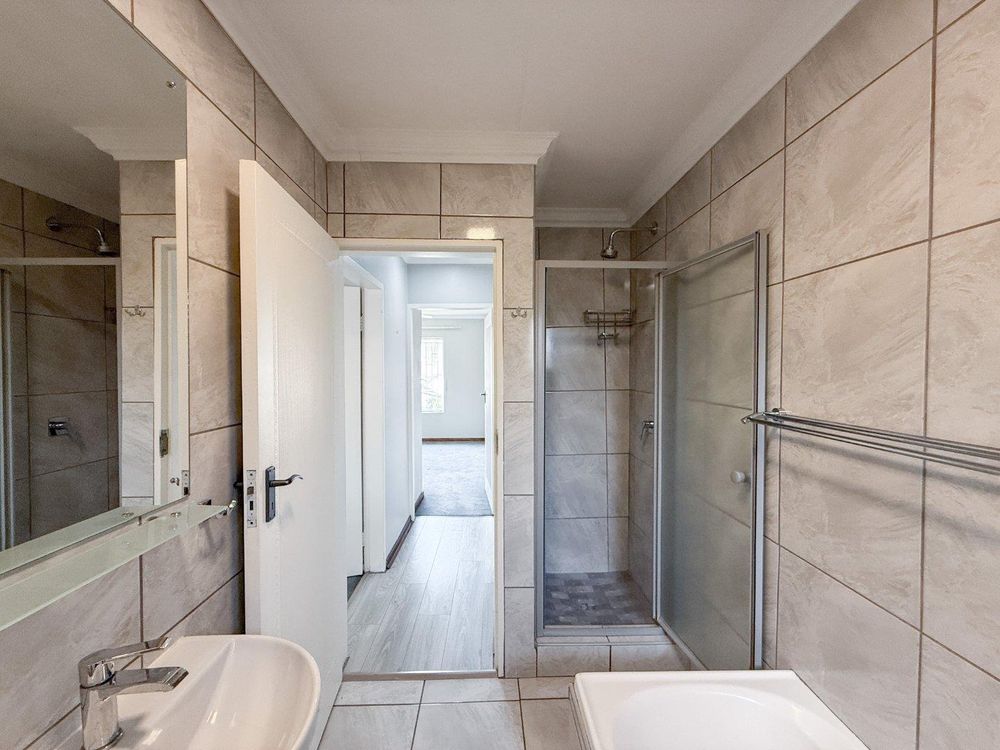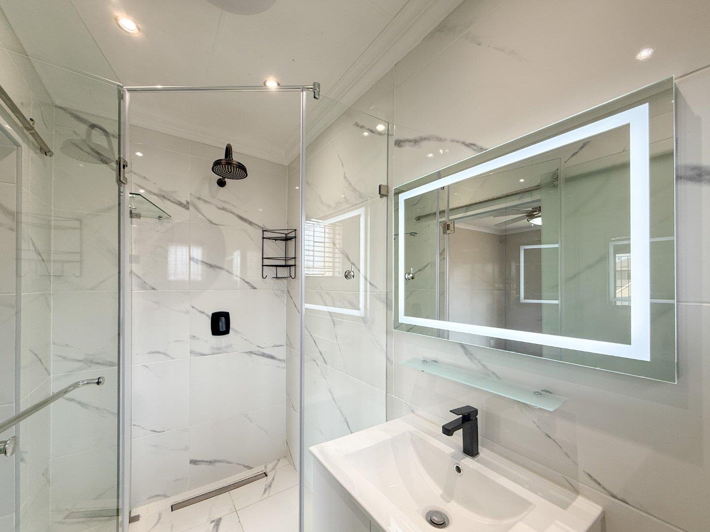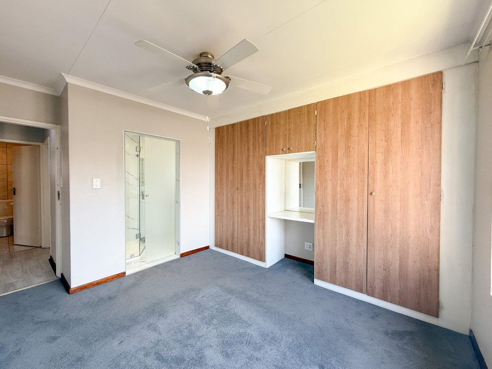 The main bedroom is a true retreat, offering ample cupboard space and a stylish en-suite bathroom complete with a large shower and elegant finishes.