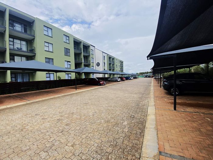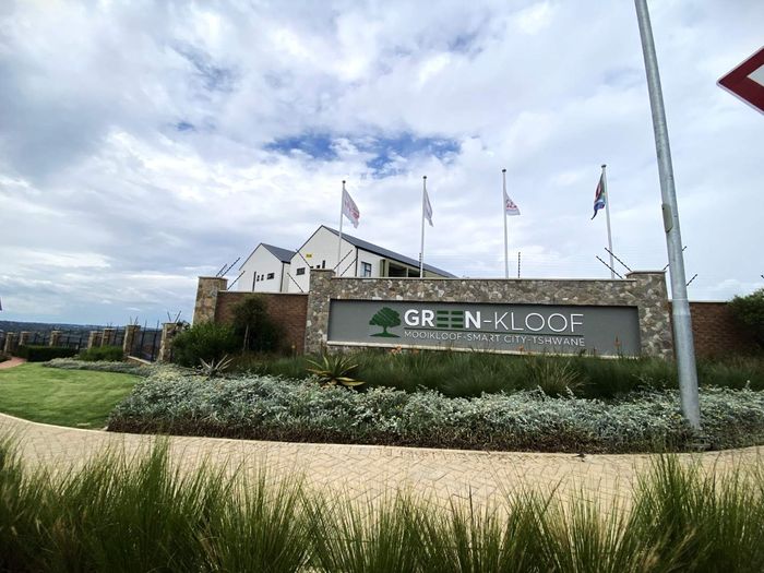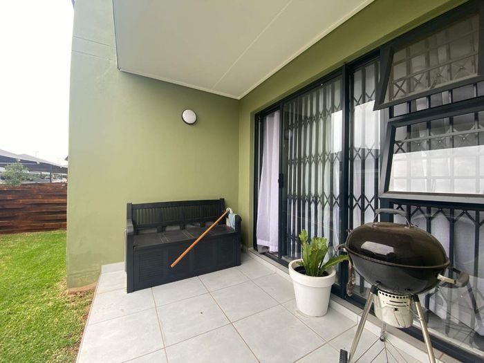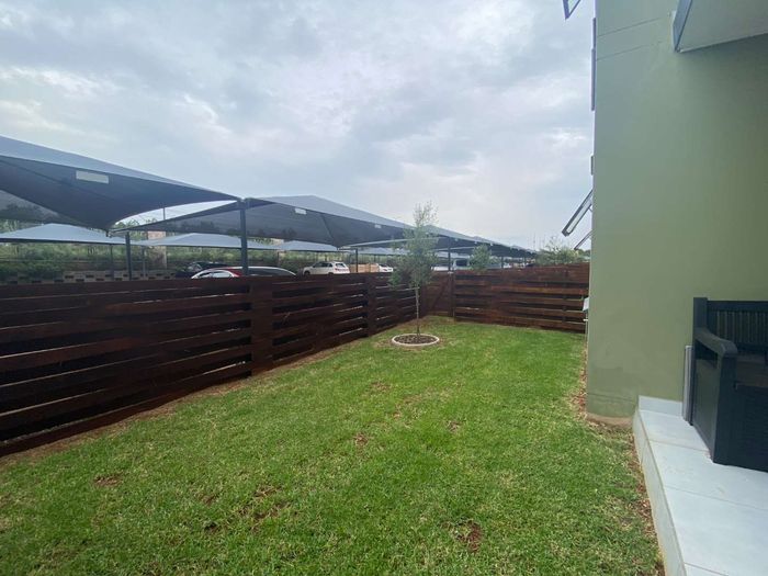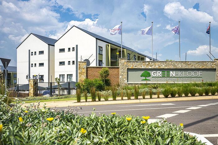 Enjoy relaxed urban living in Greenkloof, Mooikloof Smart City — ground-floor apartment with seamless indoor-outdoor flow, landscaped communal garden and pool; two bedrooms, two bathrooms, two covered parking.