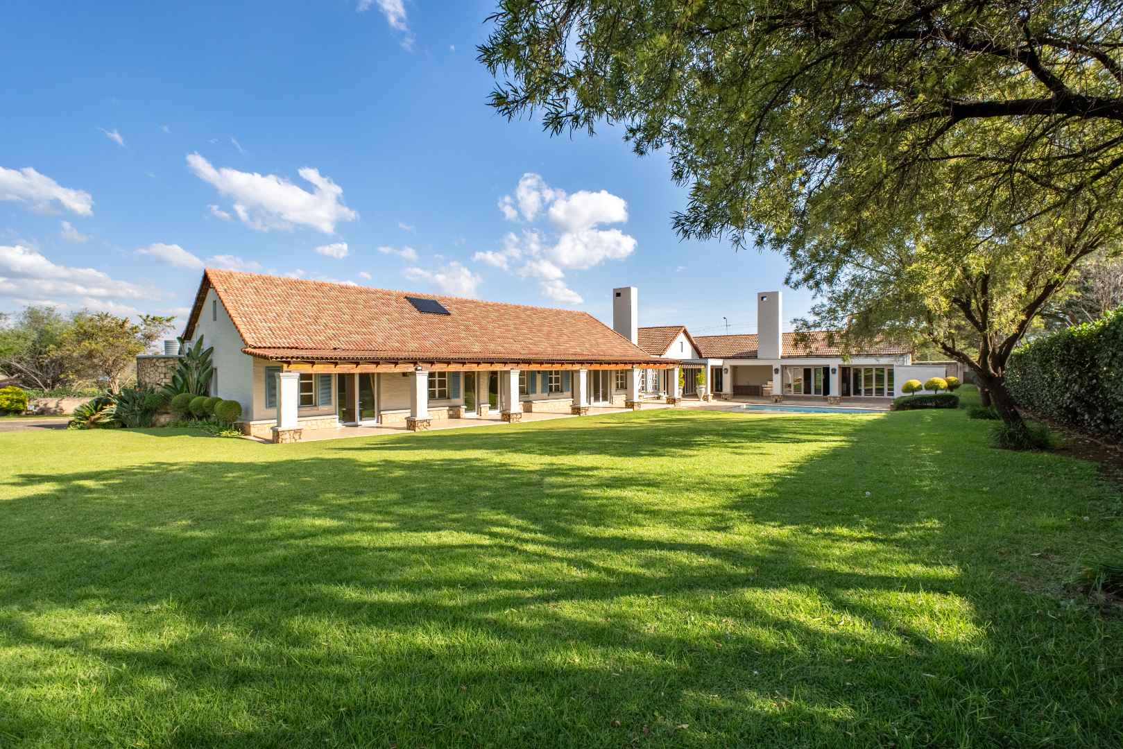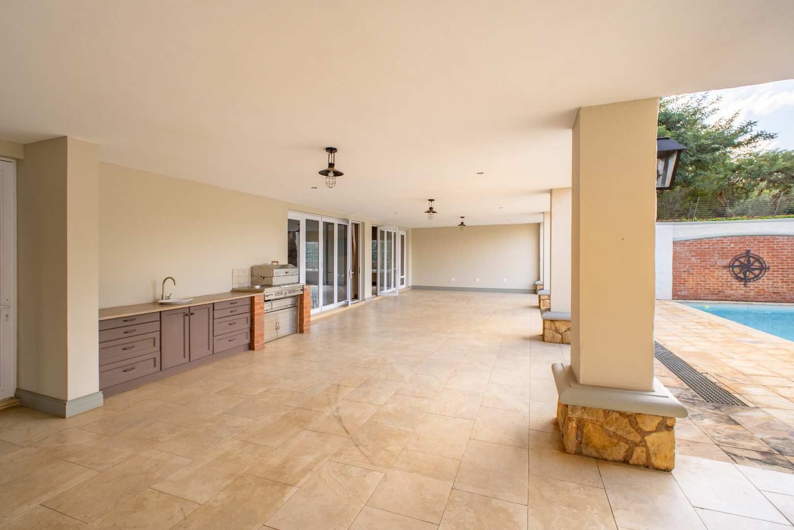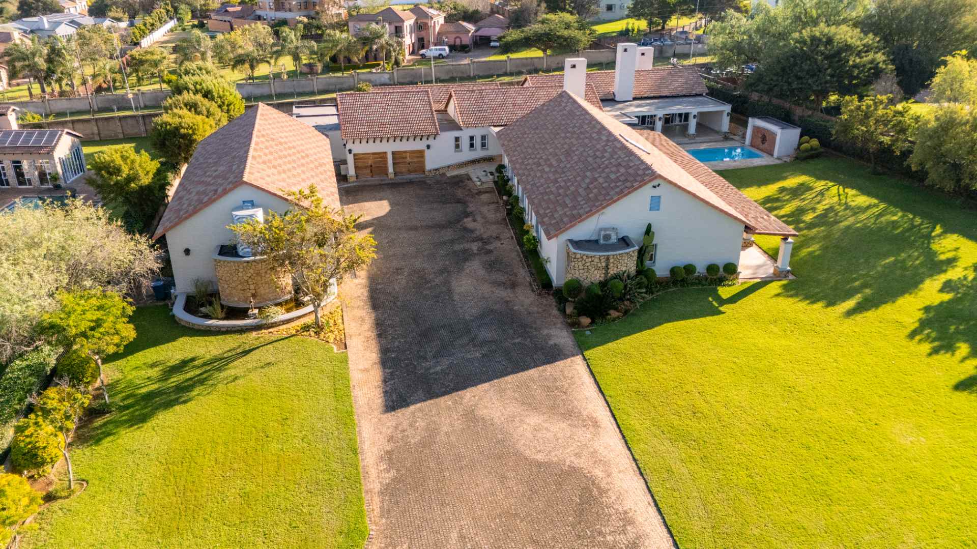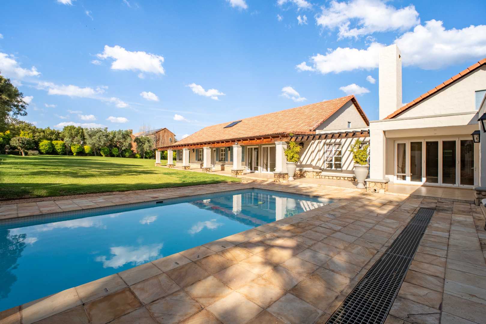 From the moment you enter, you’re greeted by high-end finishes and thoughtfully designed interiors. The heart of the home is the fully equipped kitchen, complete with a scullery, pantry, and laundry area—perfect for seamless living and entertaining. A separate bar and open-plan entertainment area flow effortlessly onto a massive swimming pool, where each bedroom enjoys direct access for the ultimate resort-like feel.