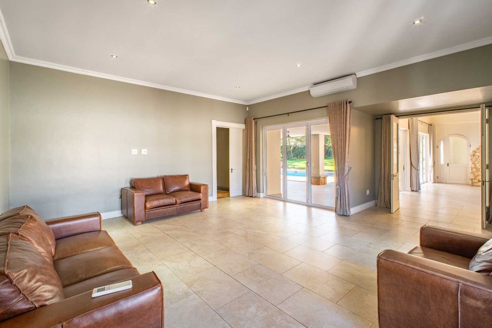 From the moment you enter, you’re greeted by high-end finishes and thoughtfully designed interiors. The heart of the home is the fully equipped kitchen, complete with a scullery, pantry, and laundry area—perfect for seamless living and entertaining. A separate bar and open-plan entertainment area flow effortlessly onto a massive swimming pool, where each bedroom enjoys direct access for the ultimate resort-like feel.