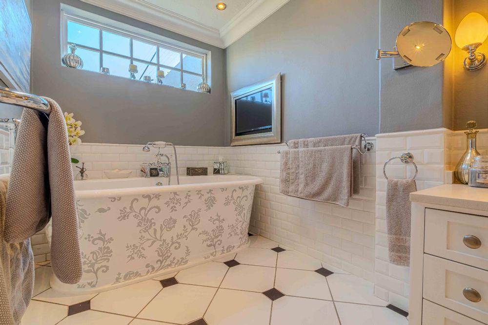 Indulge in luxury within the main bathroom, featuring a dreamy Victorian-style bathtub with a built-in TV for ultimate relaxation. Additional features include a 60KVA Perkins generator, 2500 water reserve, Sonos sound system throughout the home, Paradox alarm system with cameras and 24-hour DVR backup, as well as central air-conditioning in the main house and individual aircon units in each room for personalized comfort.