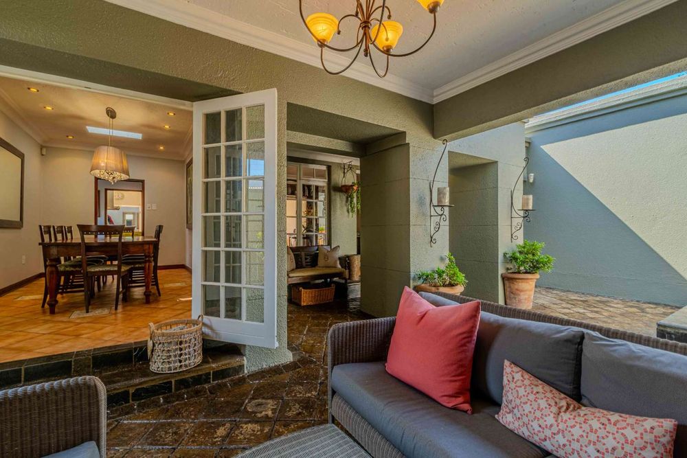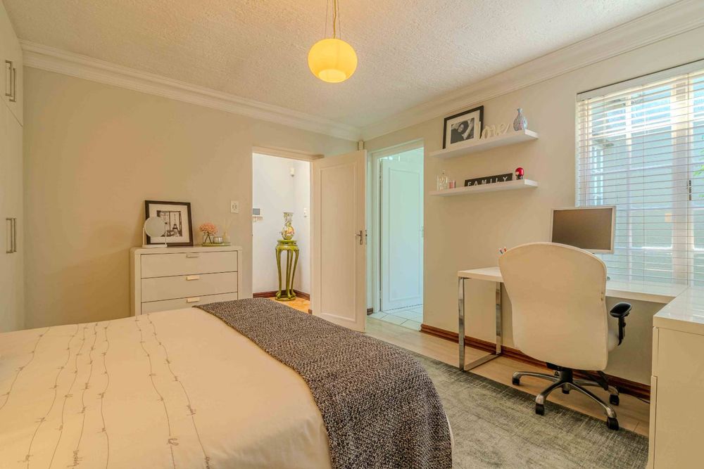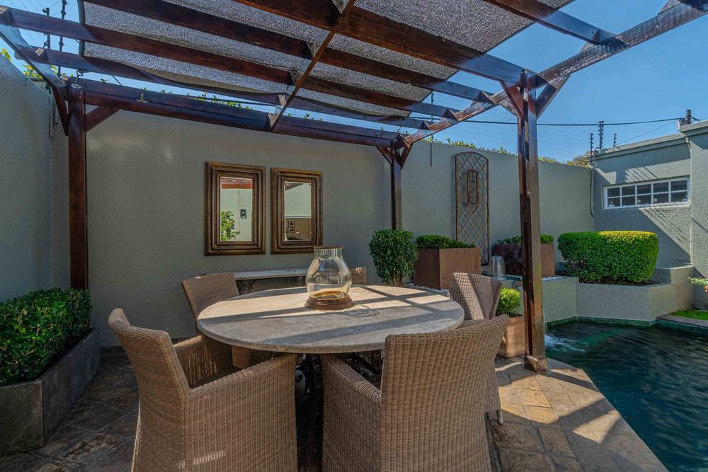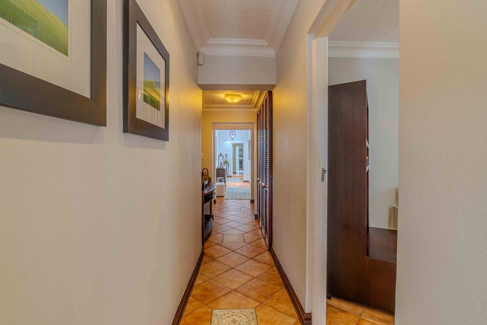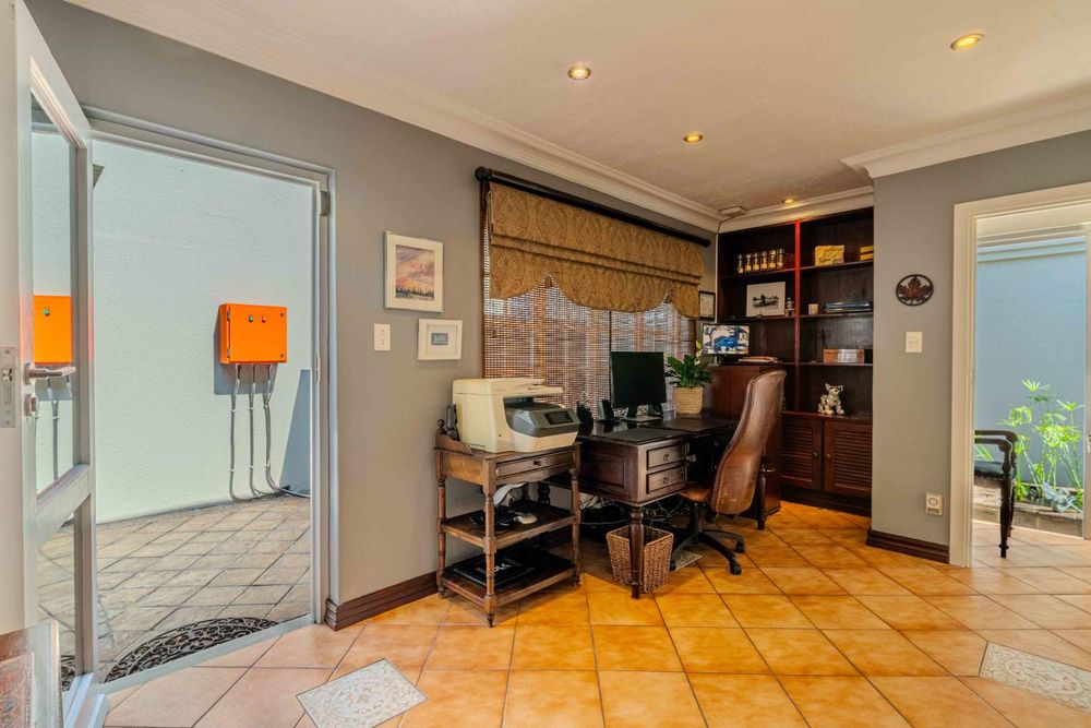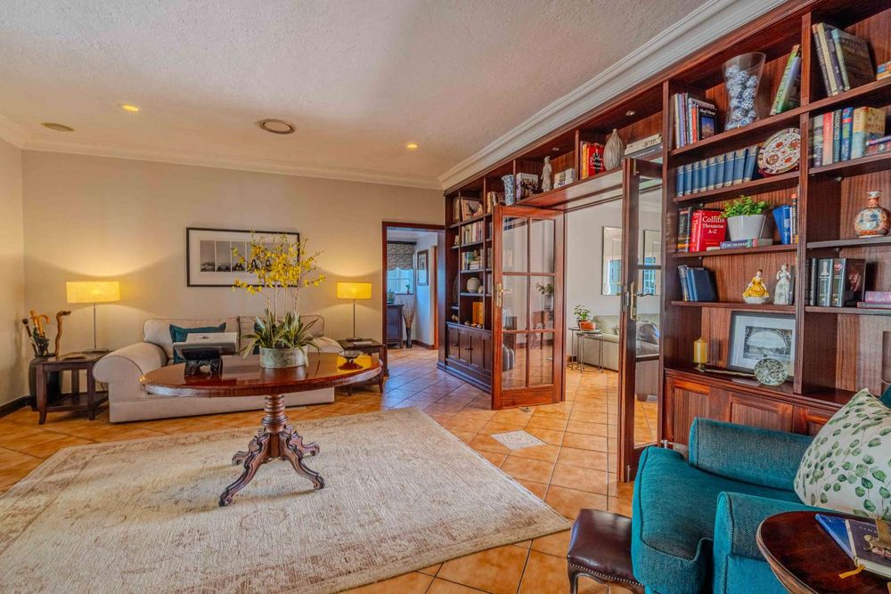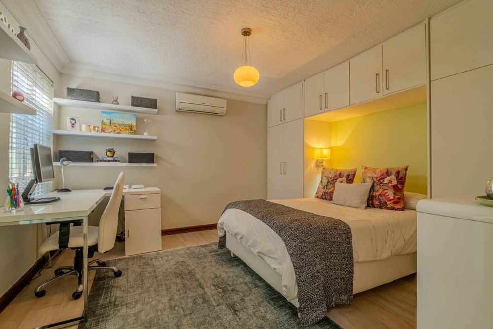 Situated within walking distance of the vibrant 4th avenue yet tucked away enough to enjoy peace and tranquility, this classic home offers a perfect blend of convenience and serenity. The entrance room features a stunning mahogany floor-to-ceiling bookshelf, adding a touch of grandeur to the space. The lounge opens out to the garden tucked away at the back of the home . It has a gas fire place .With four tastefully decorated bedrooms, three of which are ensuite, a study, and an upstairs flatlet transformed into a cinema room with a premium Bose sound system, this home caters to both relaxation and entertainment needs.