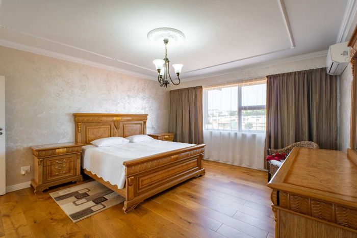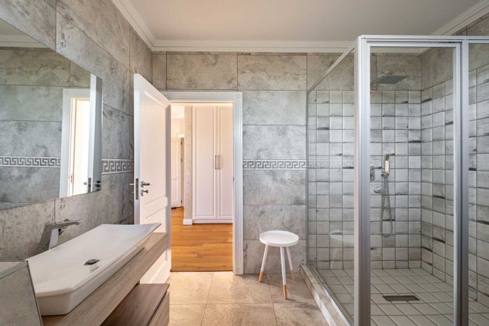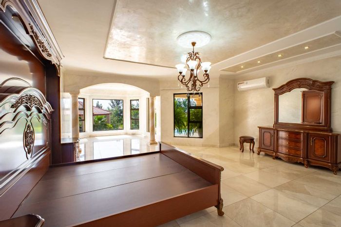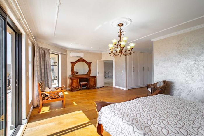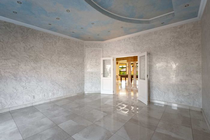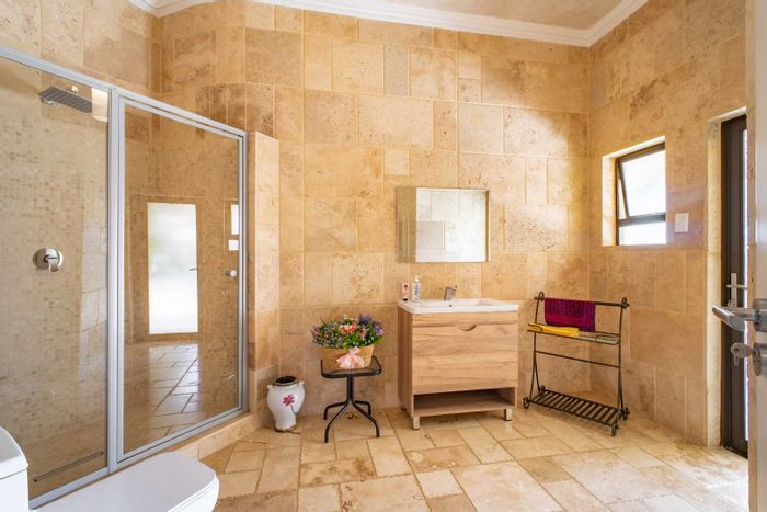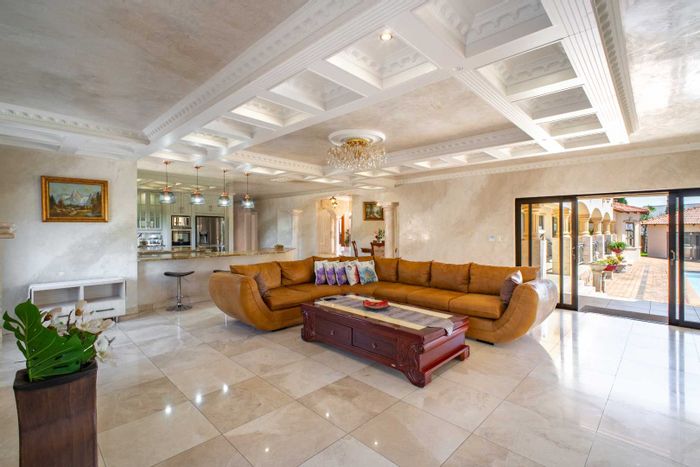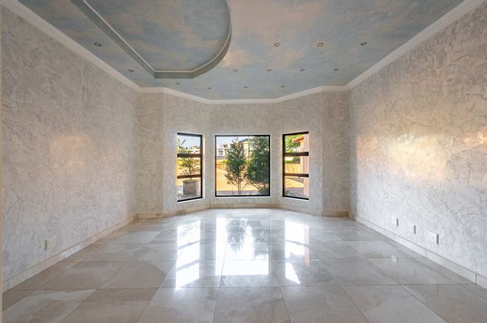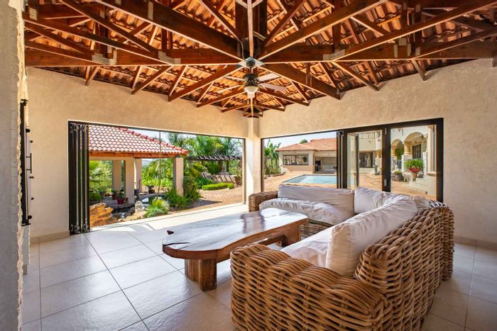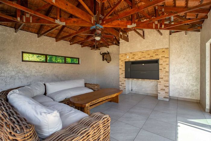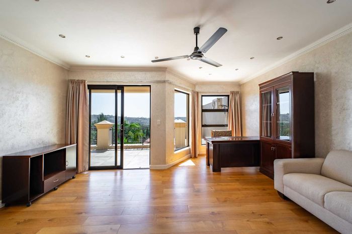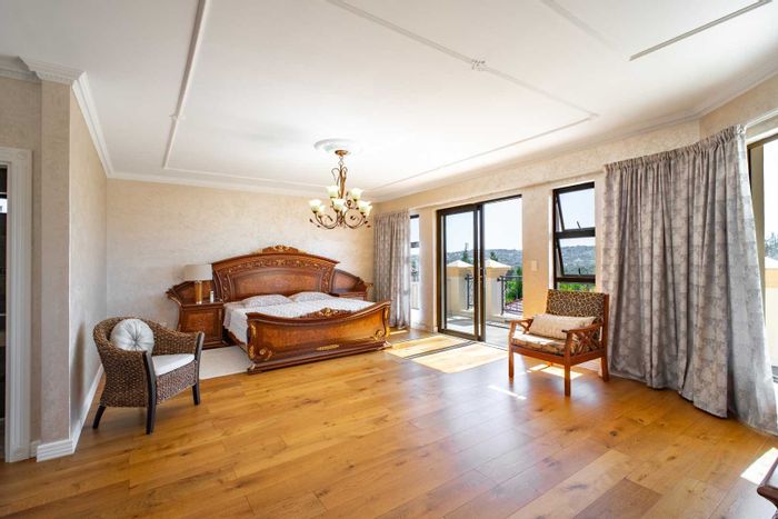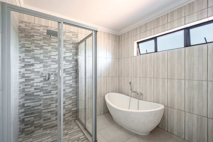 Fully furnished contemporary townhouse with butterfly roof and double-volume entrance, garden patio with braai and hot tub; near major routes, shopping and schools — 3 beds, 2.5 baths, double garage.