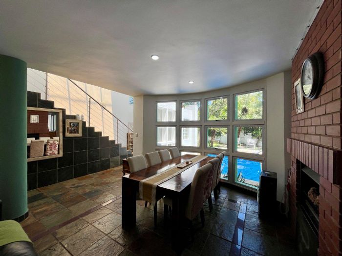 Entertainer's retreat in a peaceful Midlands Estate crescent, steps from park, pools and trails; modern kitchen flows to indoor-outdoor braai and pizza oven, with four bedrooms, four bathrooms.