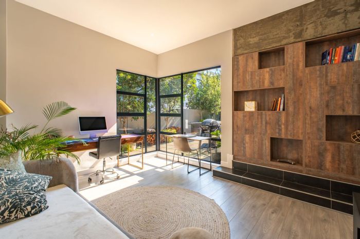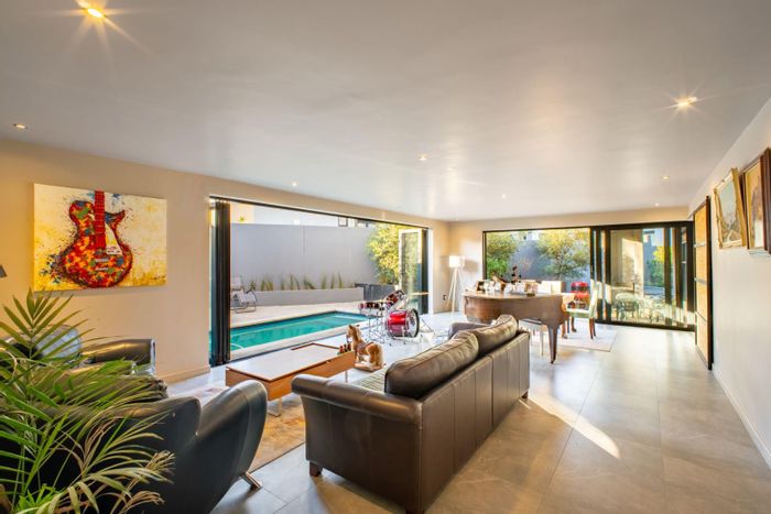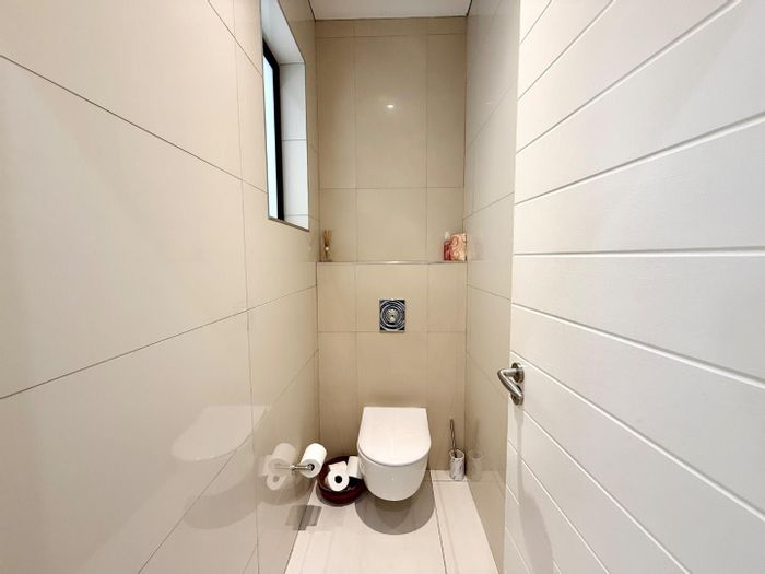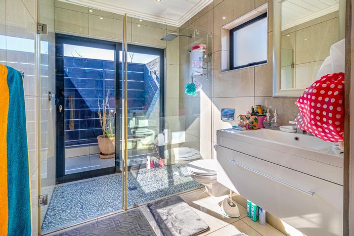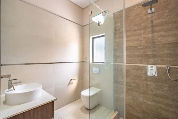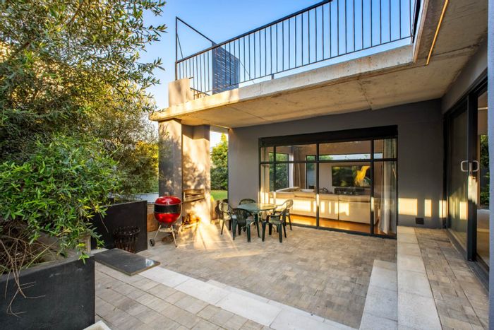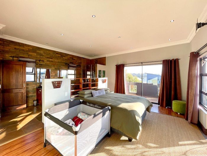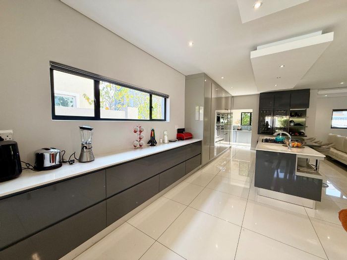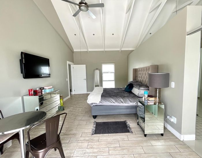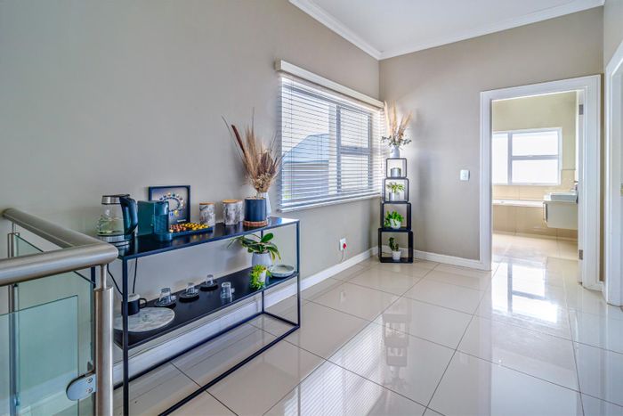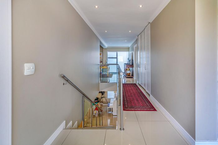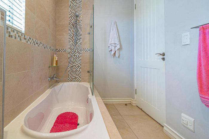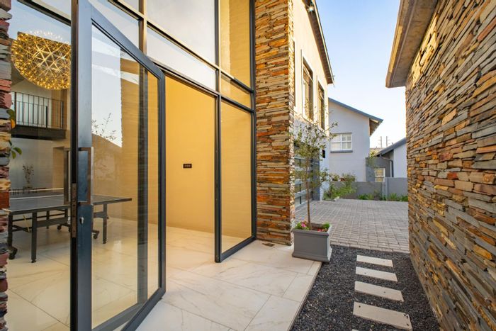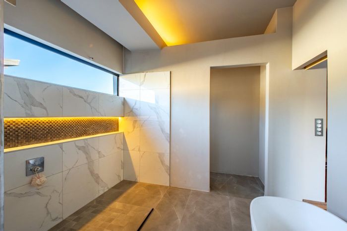 Dam-front entertainer in Waterfall Country Village Estate, steps from the clubhouse, with pool, covered braai patio, cinema room and premium kitchen. Five bedrooms, double garage.
