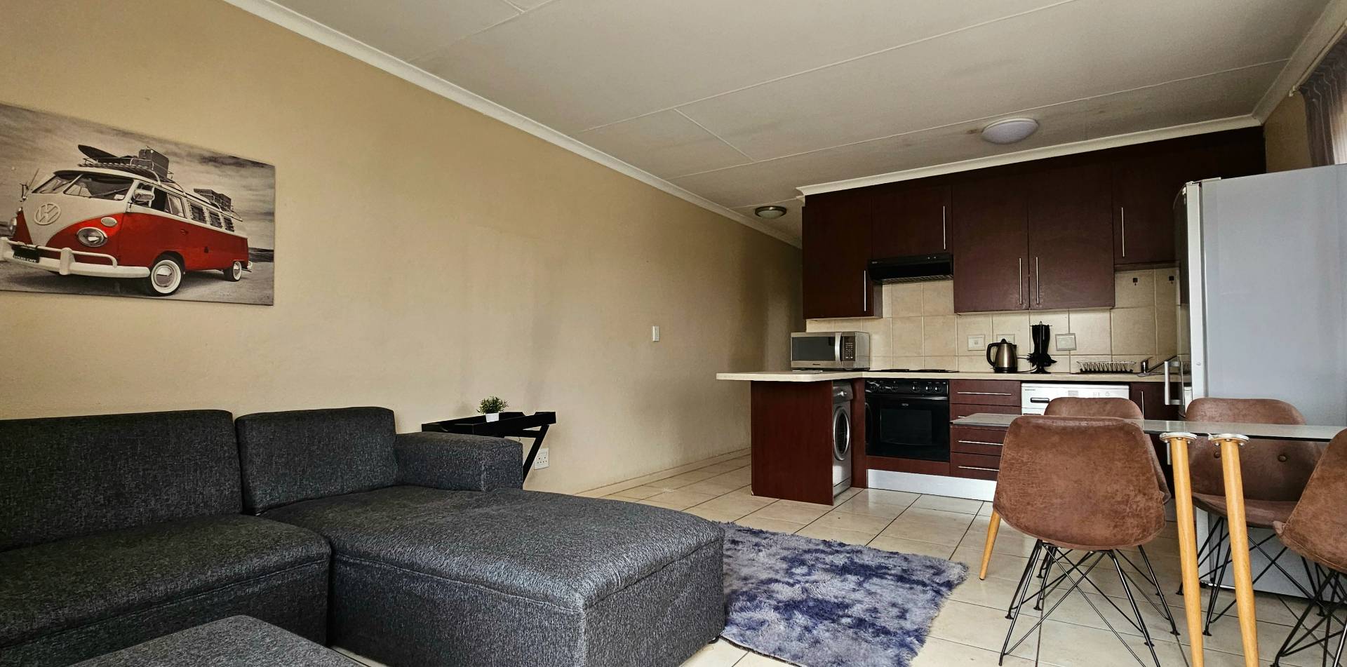 Discover a delightful living experience in this fully furnished 1-bedroom, 1-bathroom top-floor unit. Designed for comfort this apartment offers a bright and airy sunlit lounge that invites relaxation and warmth. Step out onto the patio, complete with a built-in braai, perfect for soaking up the sun guests or enjoying a quiet evening under the stars.