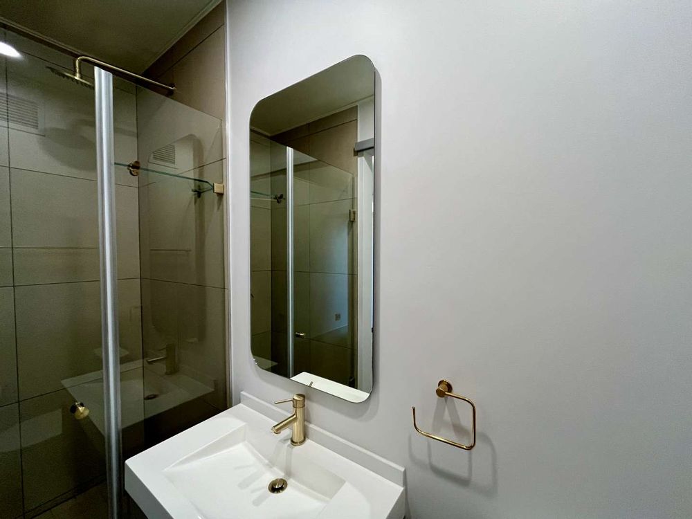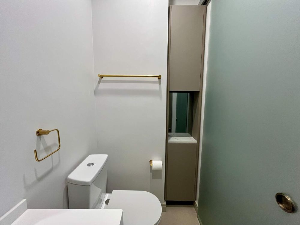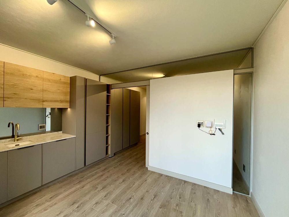 This meticulously designed studio apartment seamlessly combines style, functionality, and luxury: