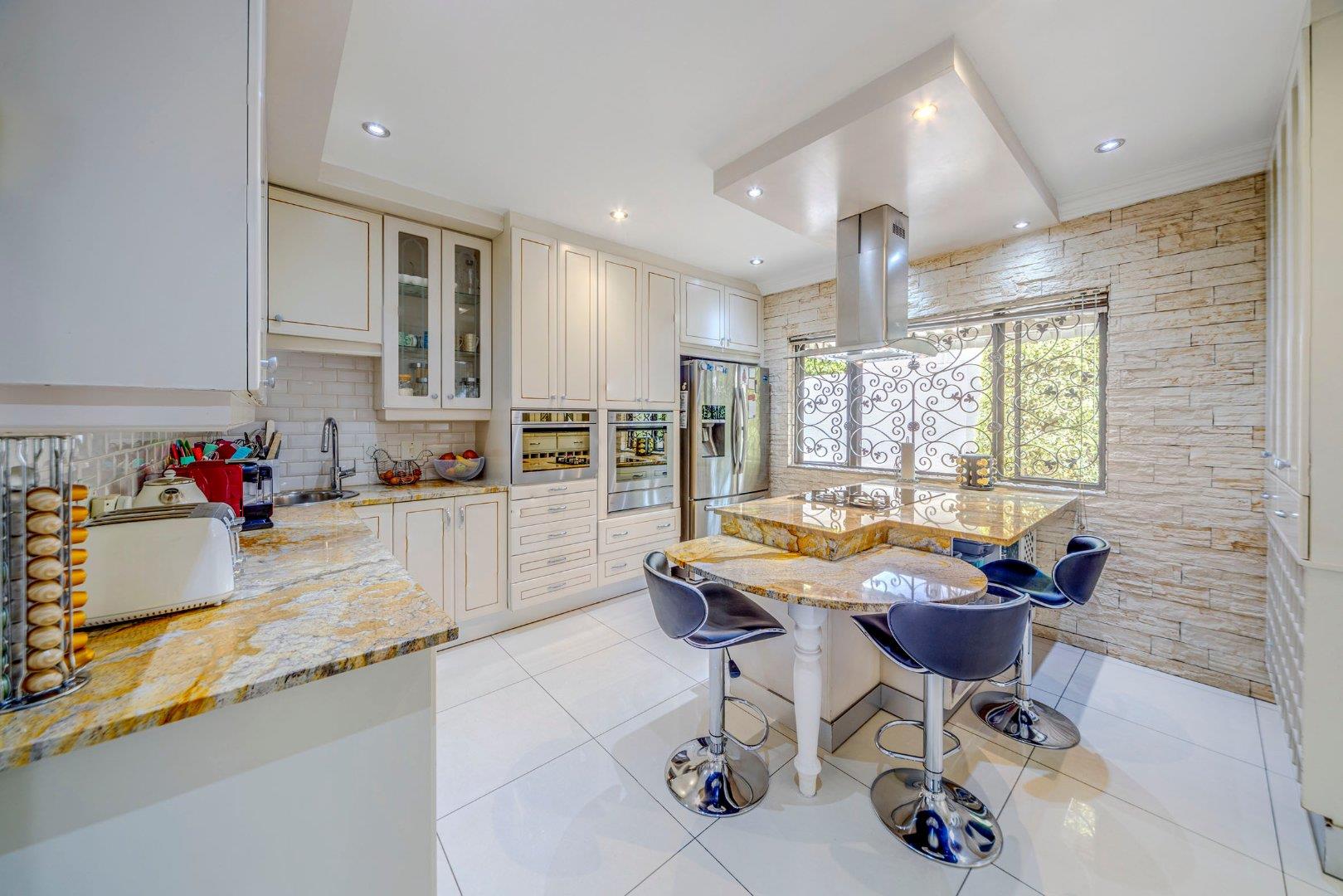 The well-designed kitchen exceeds expectations with its ample built-in cupboards, dual gas and electric stoves, laundry area, and seamlessly integrated appliances. It's the perfect setting for family gatherings around the round table, combining functionality with elegance. A spacious pantry and scullery offer abundant storage and workspace for all your culinary needs.
