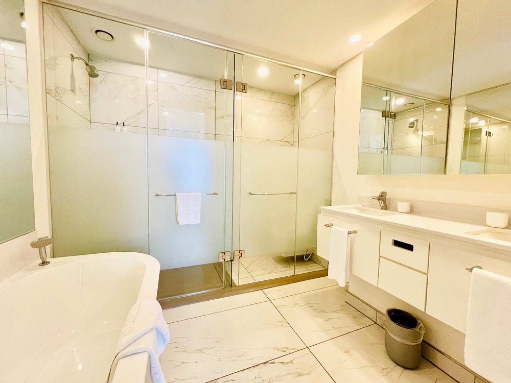 Each of the two spacious, fully furnished bedrooms is fitted with plush furnishings and boasts its own en-suite bathroom. The master bedroom opens onto a private balcony, perfect for enjoying the city’s panoramic views in tranquility.