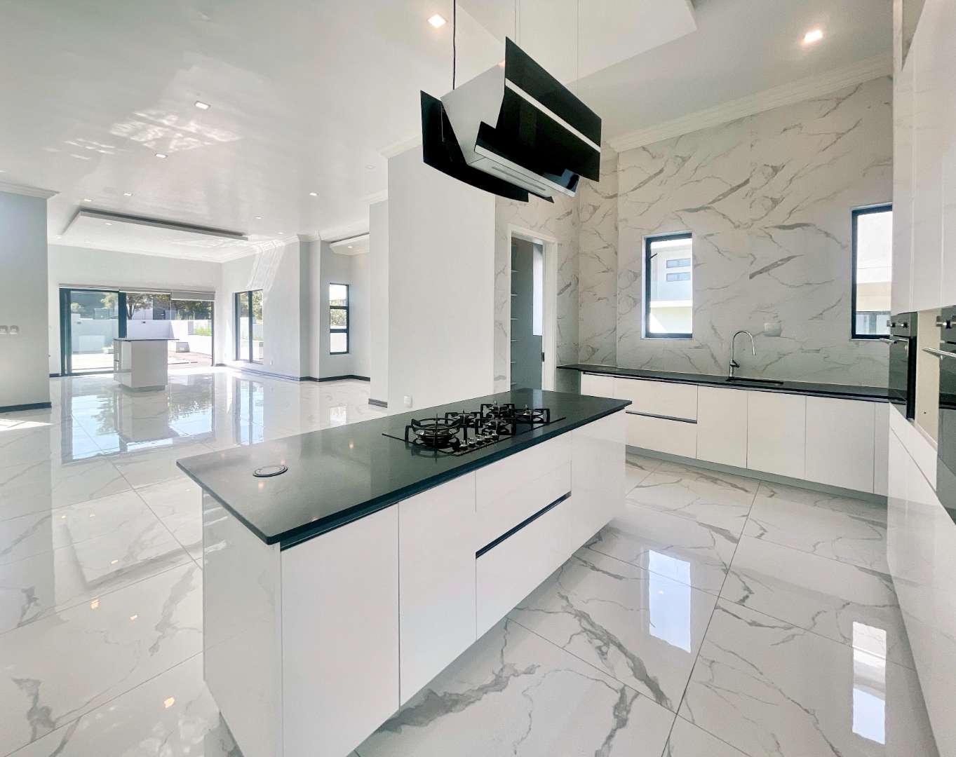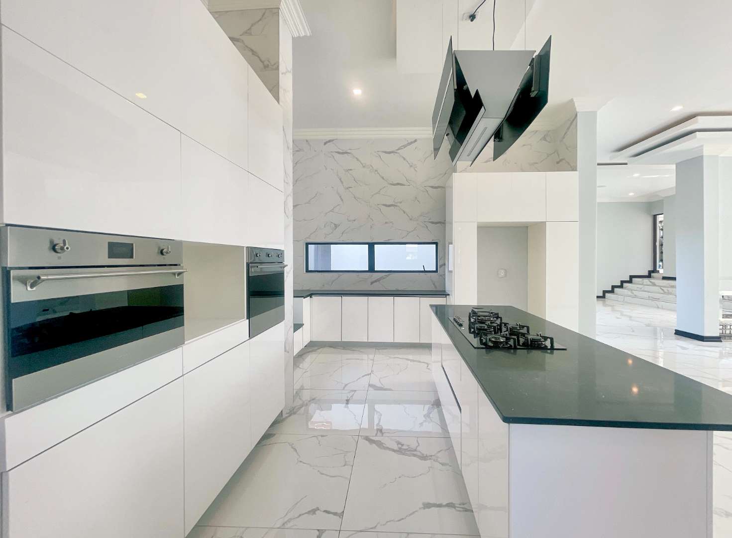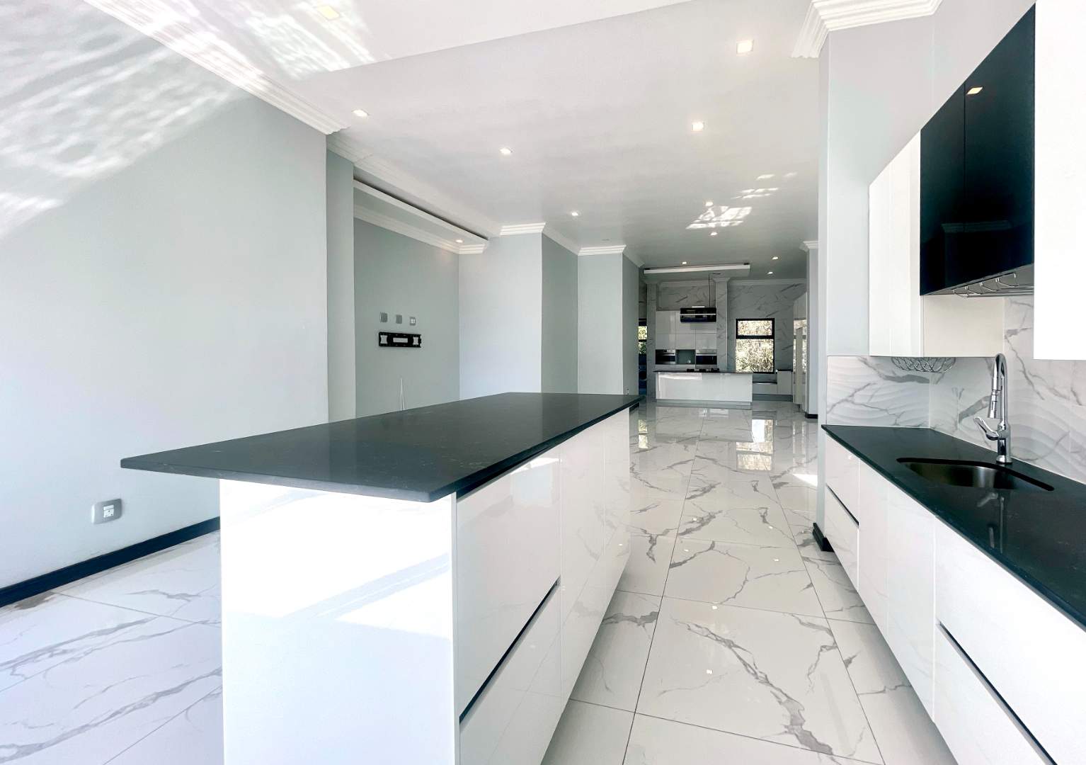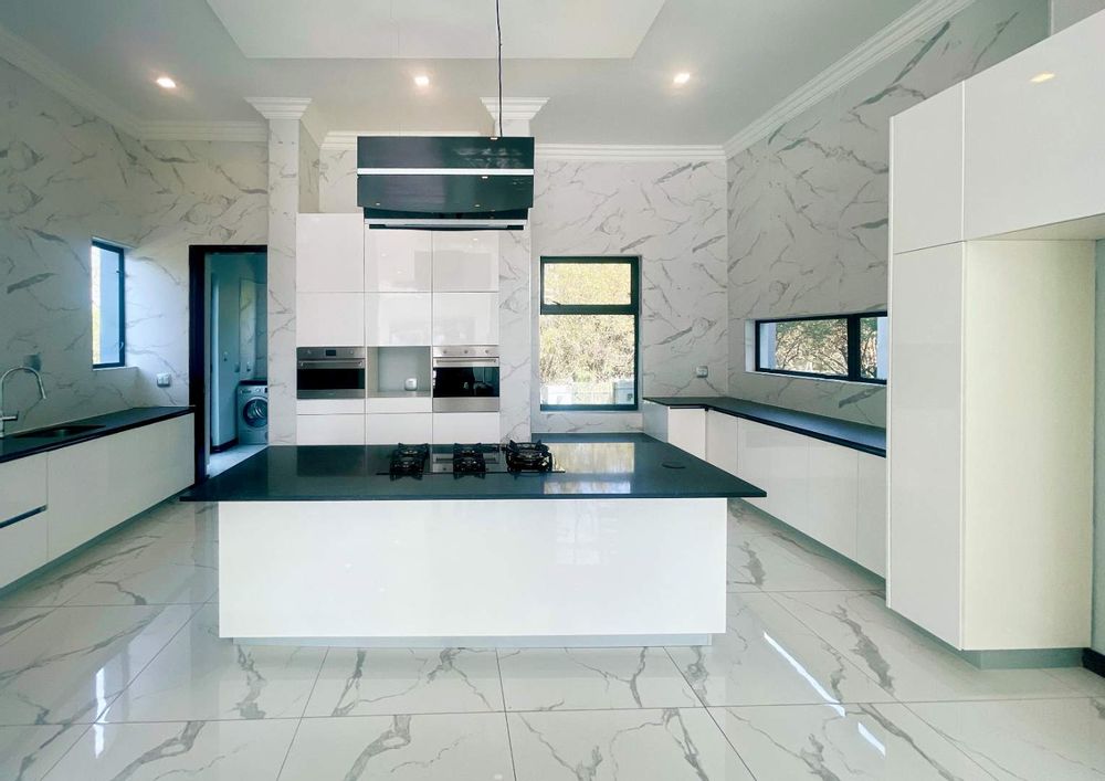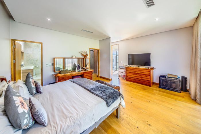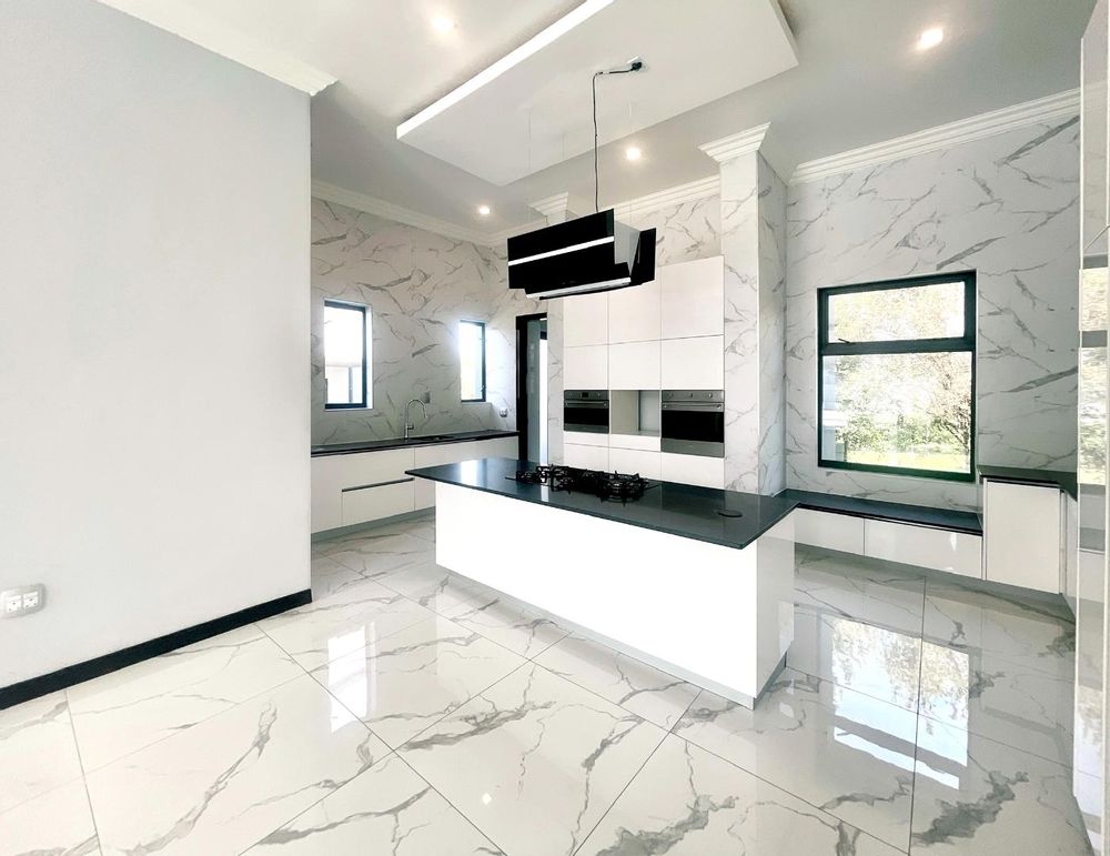 On the right side of the entrance, discover a stunning gourmet kitchen equipped with a separate scullery and pantry. The kitchen also includes a cozy breakfast nook and effortlessly flows into a spacious open-plan dining and TV room. This area features an additional guest bathroom, making it perfect for entertaining guests.