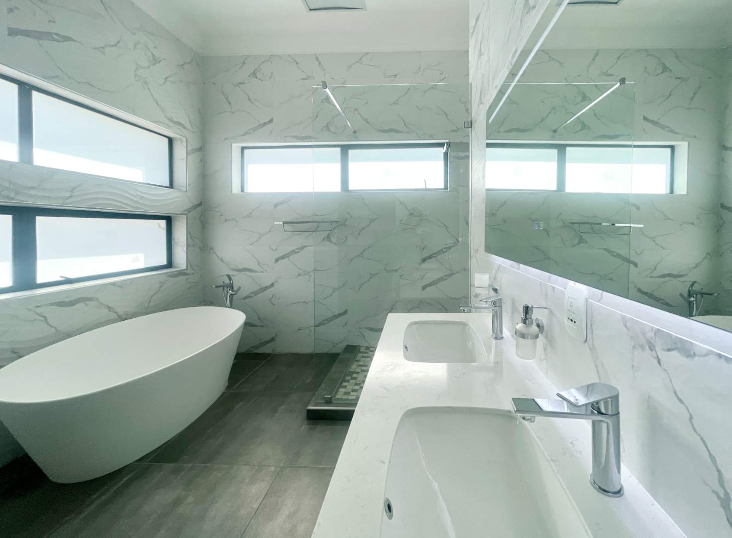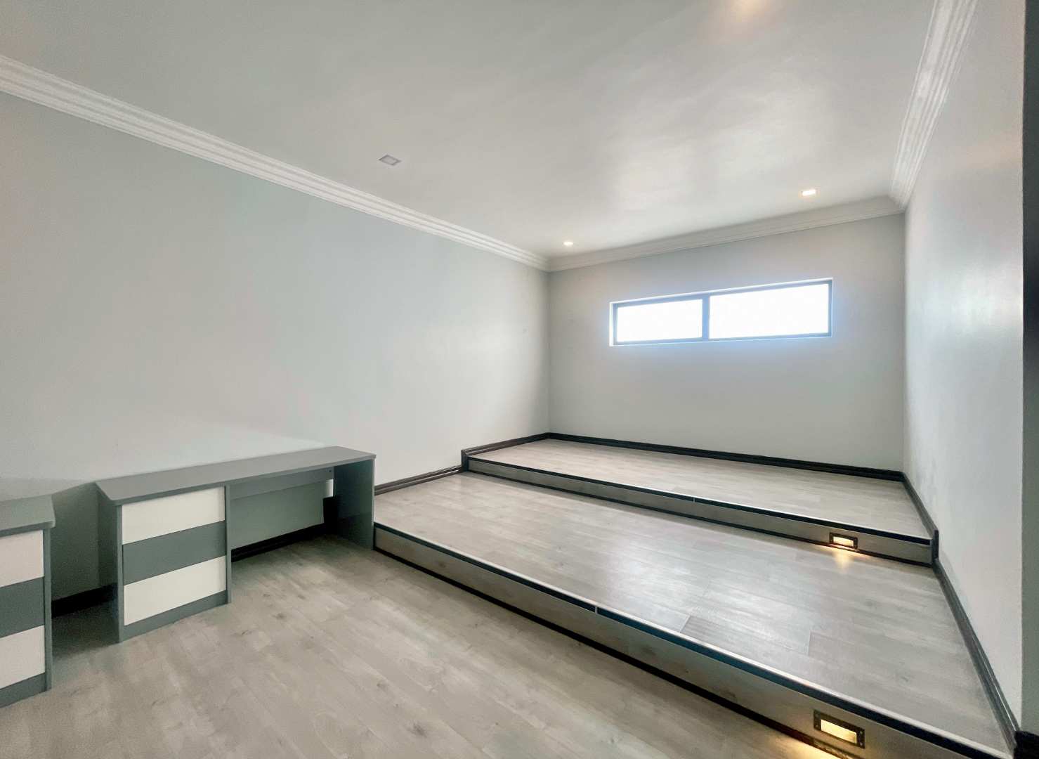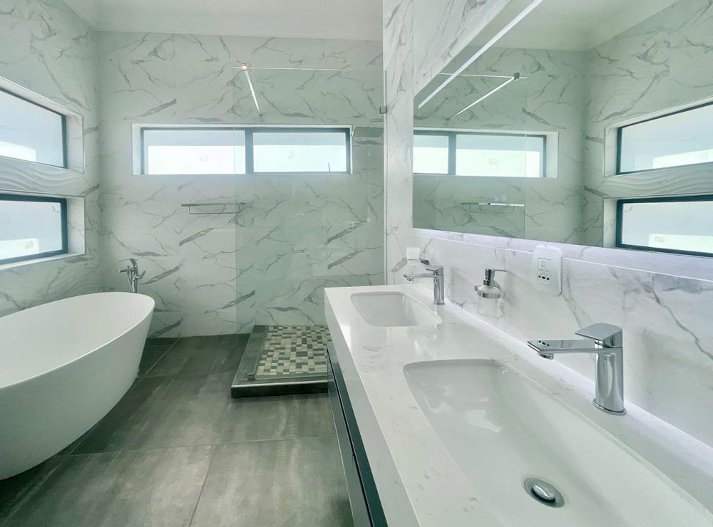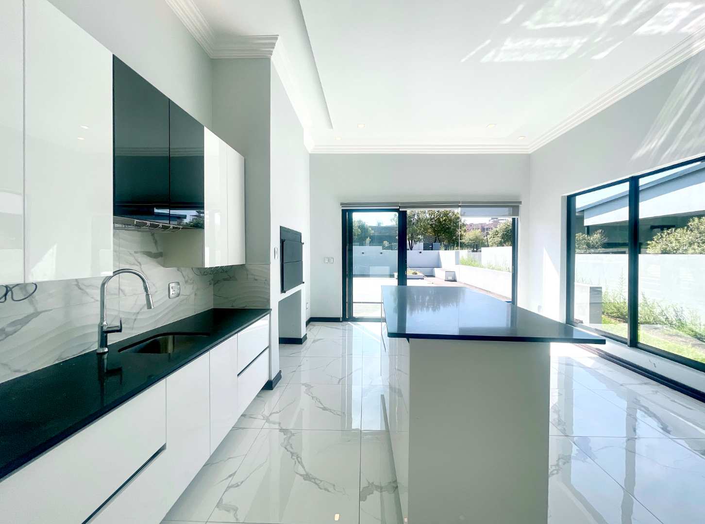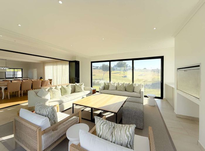 On the right side of the entrance, discover a stunning gourmet kitchen equipped with a separate scullery and pantry. The kitchen also includes a cozy breakfast nook and effortlessly flows into a spacious open-plan dining and TV room. This area features an additional guest bathroom, making it perfect for entertaining guests.