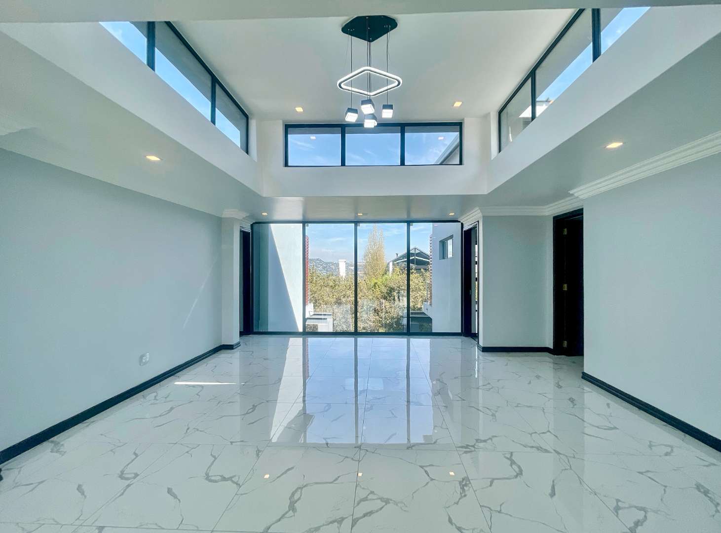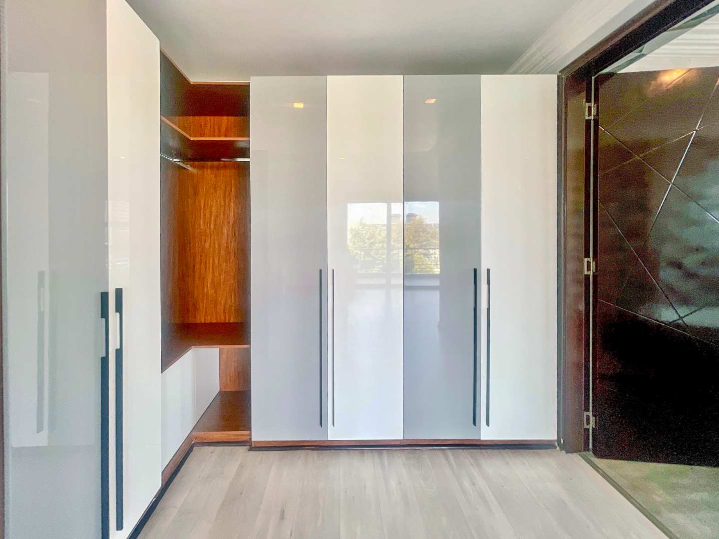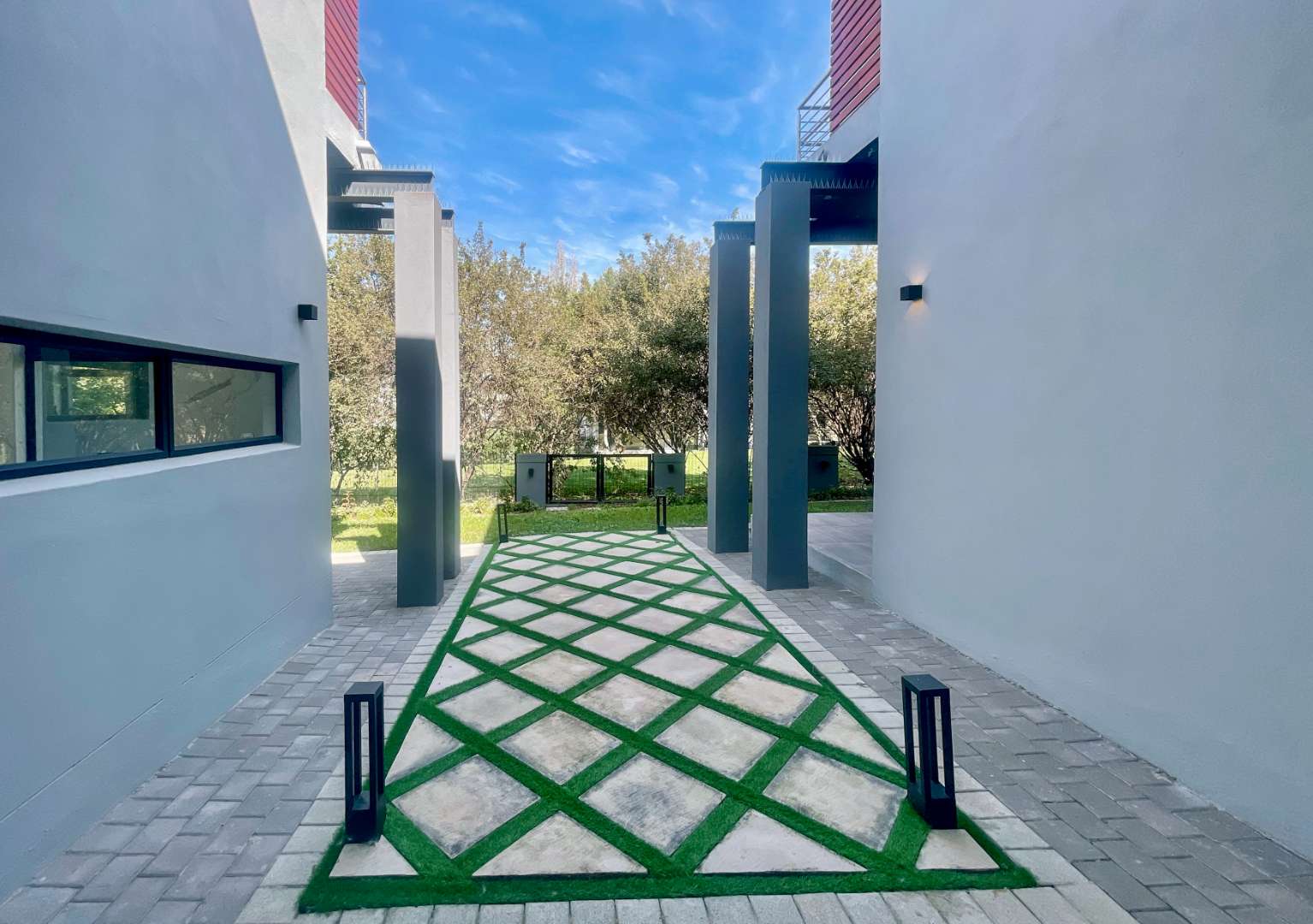 Upstairs, the luxurious master suite serves as your sanctuary. It includes a kitchenette, an expansive bathroom, a walk-in closet, and offers breathtaking views of the surrounding green belt. Bedroom two features its own private balcony and a full en-suite bathroom, while bedrooms three and four also offer full en-suite bathrooms and their own balconies. A cozy pajama lounge completes the upstairs area, providing an additional space for relaxation. All bedrooms are equipped with air-conditioning to ensure comfort throughout the year.