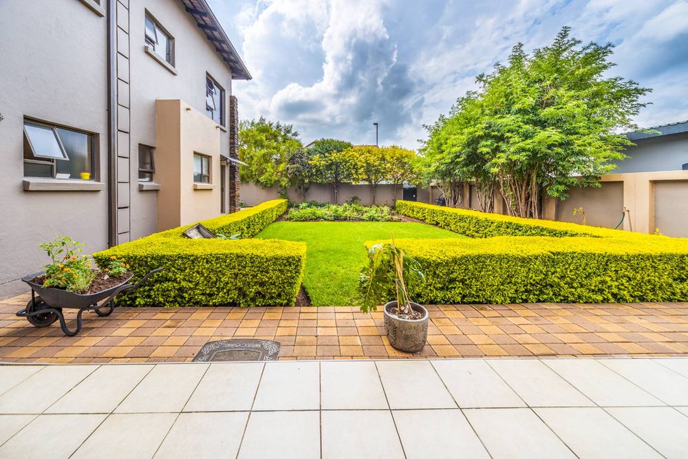 The patio opens up to a beautiful garden, providing an idyllic setting for al fresco dining, entertaining guests, or simply enjoying the serenity of nature. The manicured garden is a private oasis, perfect for outdoor activities and relaxation.