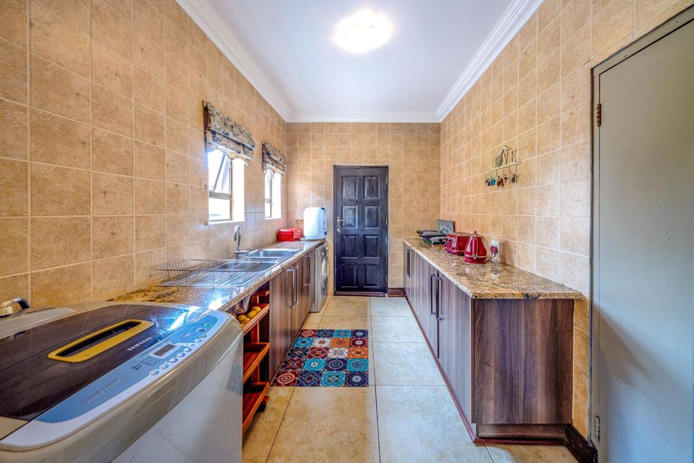 The heart of this home is undoubtedly the elegant kitchen, featuring modern appliances, an island gas stove, and impeccable cupboard designs. The separate scullery ensures a clutter-free space, allowing you to indulge in your culinary pursuits with ease.
