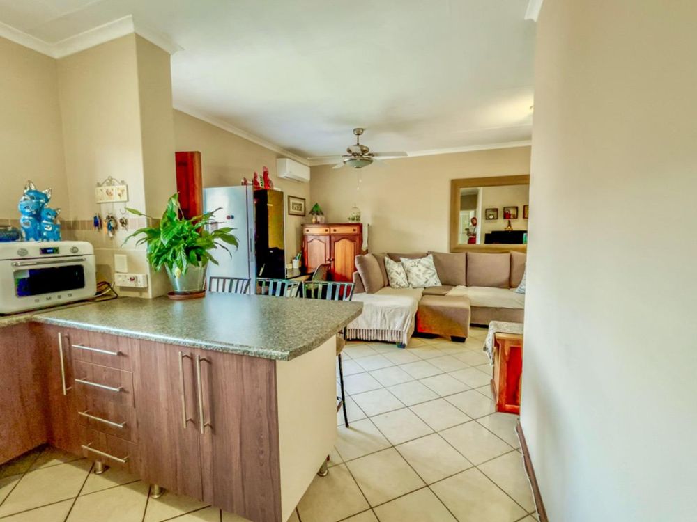 Step into a warm and inviting open-plan living space, where the kitchen and lounge flow seamlessly together. The kitchen is well-designed with ample cupboard space, a practical peninsula that comfortably accommodates three barstools, and room for two appliances (washing machine and dishwasher). It also features an electric oven with a gas and electric stove combination, offering both convenience and efficiency. A large window allows for beautiful natural light to fill the space.