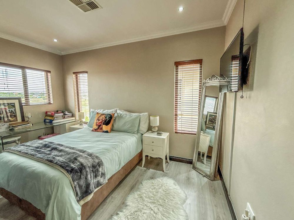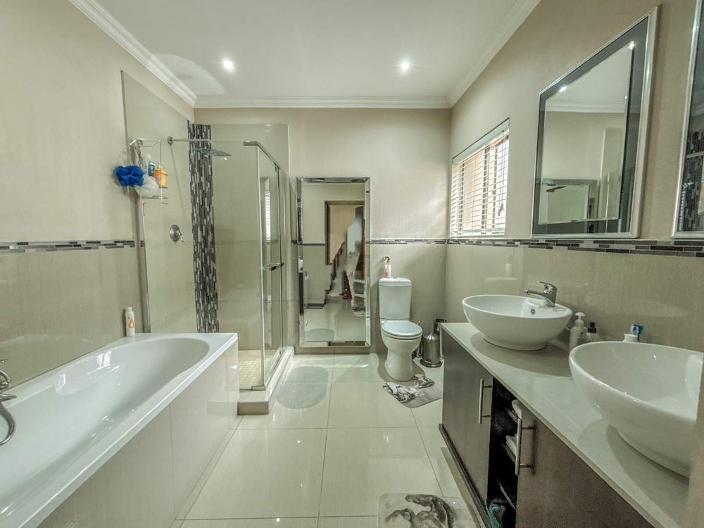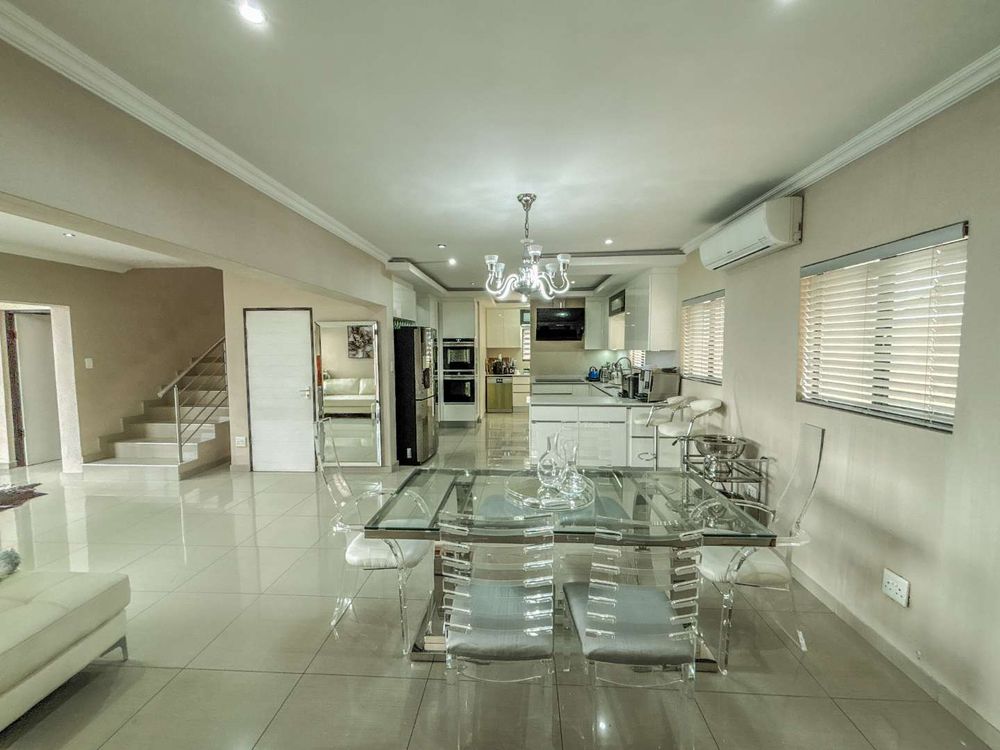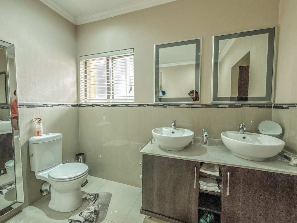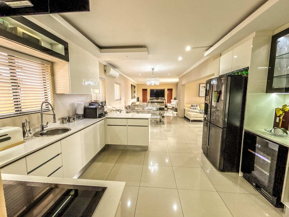 Downstairs, you’ll find 2 spacious living areas ideal for relaxation or entertaining guests, a dining room perfect for family meals, and a beautiful kitchen equipped with state-of-the-art appliances. The scullery provides ample space for multiple appliances, while a staff quarter adds convenience for household support. Step outside to a covered patio with an inbuilt braai and a sparkling pool, surrounded by a lovely outdoor area perfect for entertaining or enjoying peaceful family time.