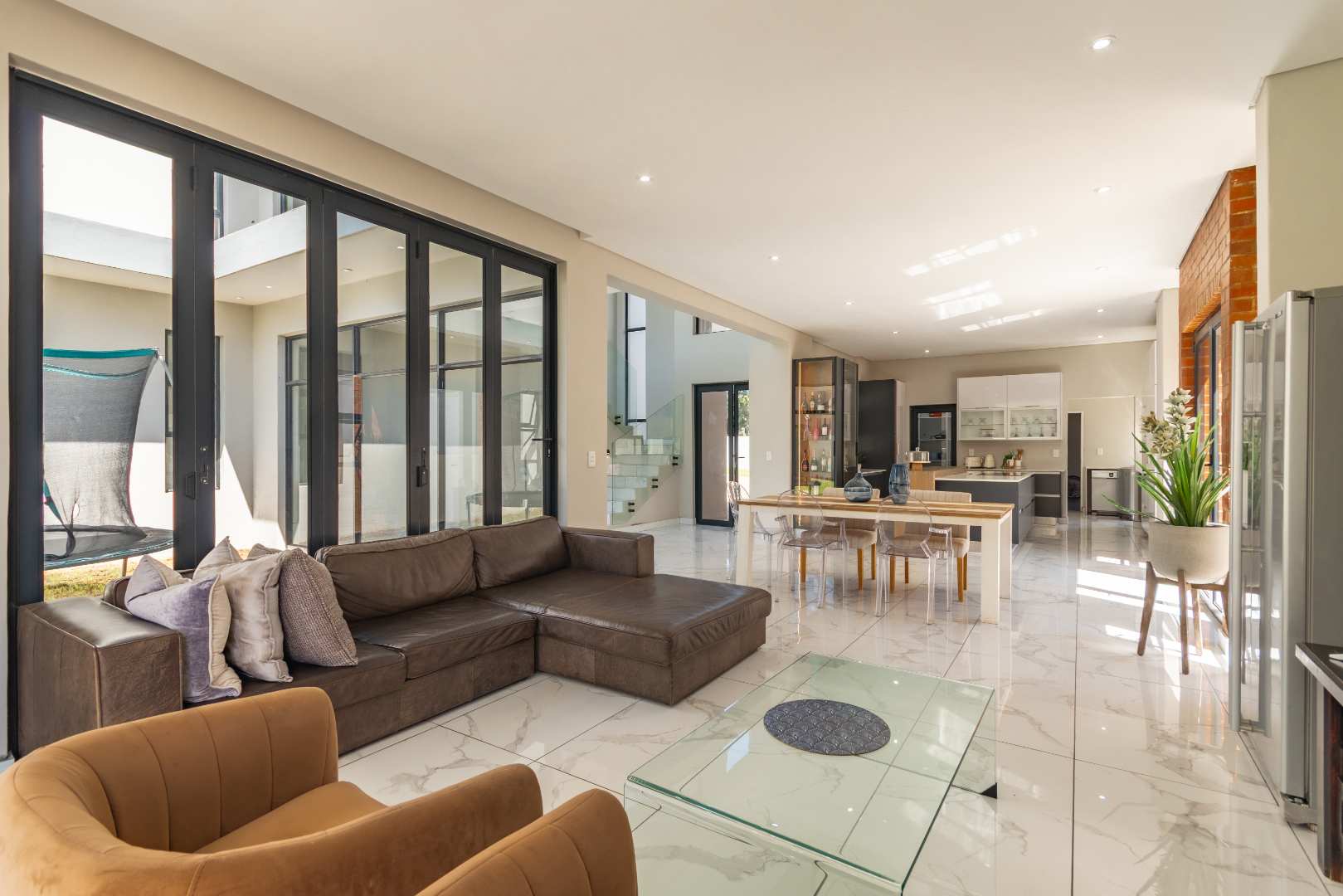* Seamless Indoor-Outdoor Living: Large folding glass doors open onto a covered patio, complete with a built-in braai, creating a perfect space for alfresco dining and entertaining.