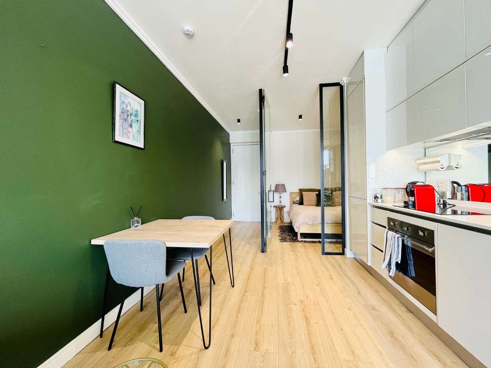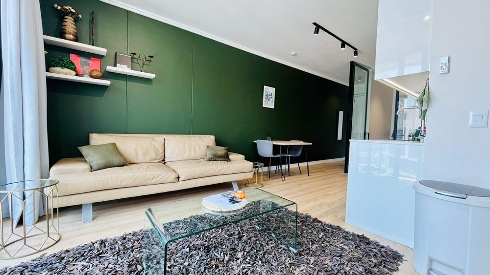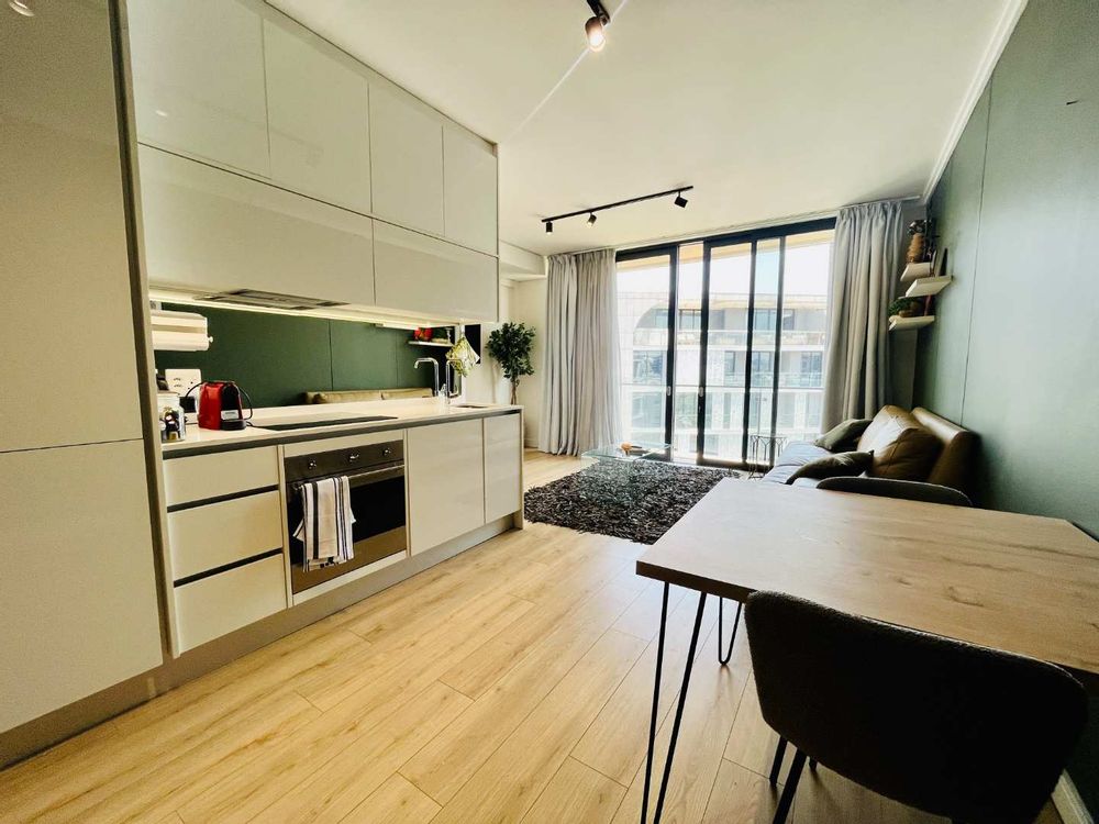 The apartment boasts an open-plan kitchen and living area, perfect for modern living. The kitchen is fully fitted with top-of-the-line appliances, ensuring a seamless culinary experience.