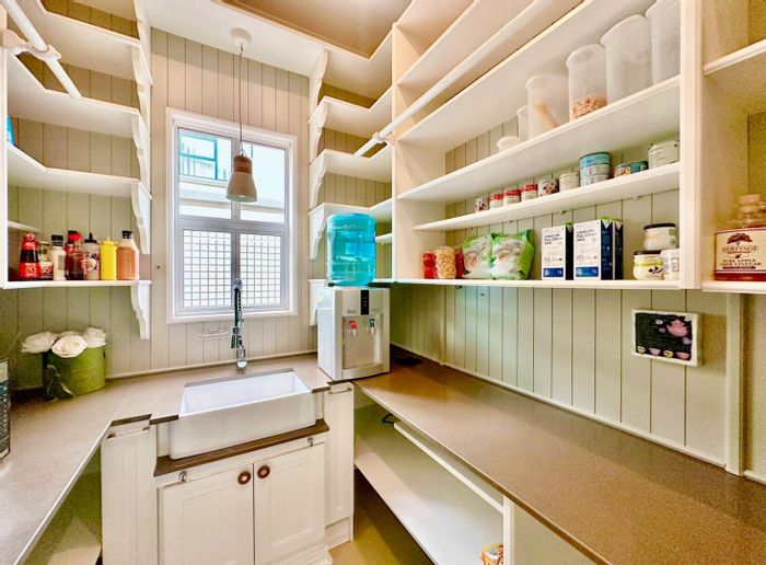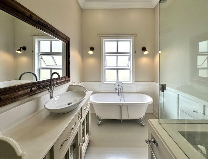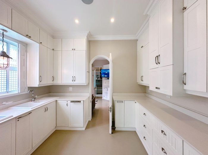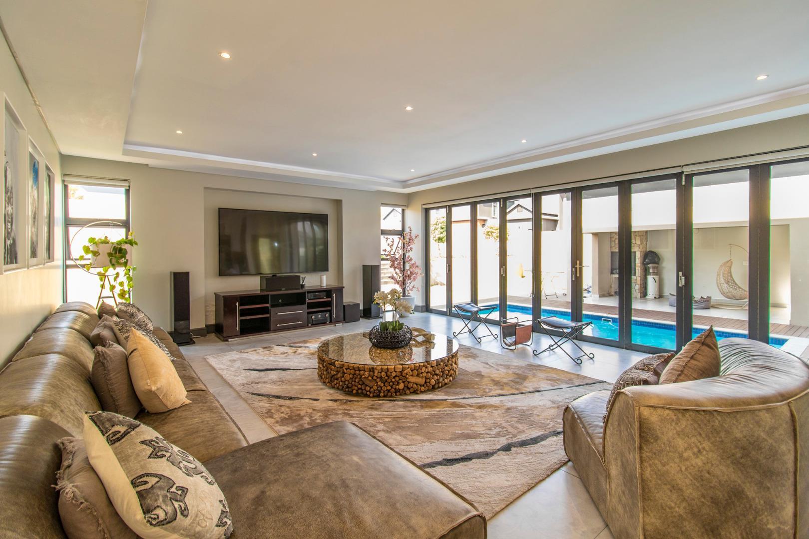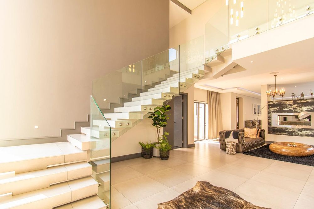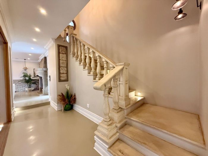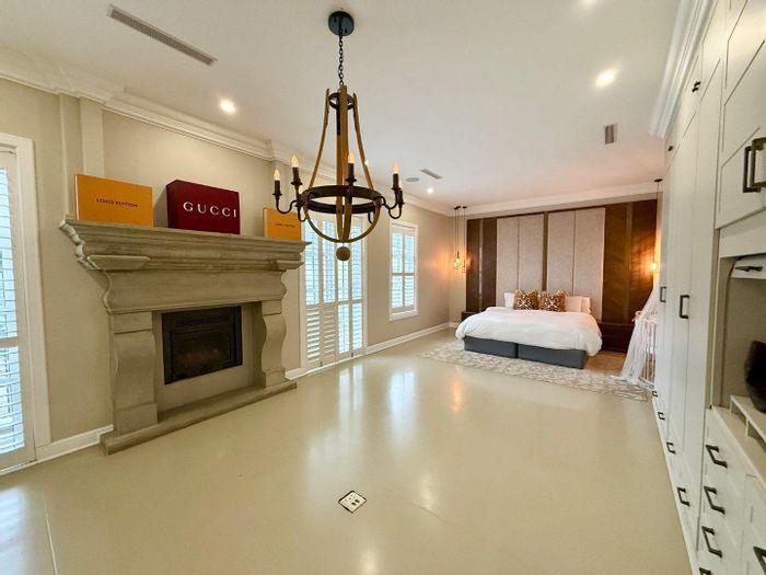 The house welcomes you with a double volume entrance hall leading to the massive kitchen and formal dining area on the right, cinema or gym room to the left and family rooms straight ahead, heated with gas fireplace. The 5th bedroom is situated on the ground floor, the rest of the bedrooms are upstairs together with a private pyjama lounge.