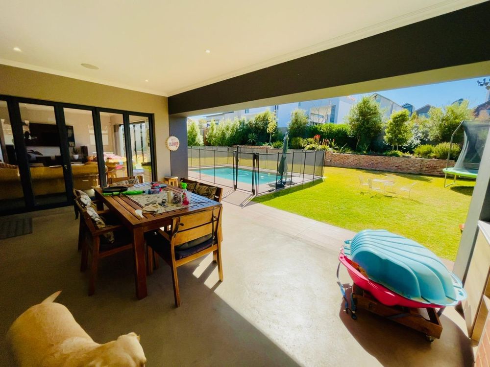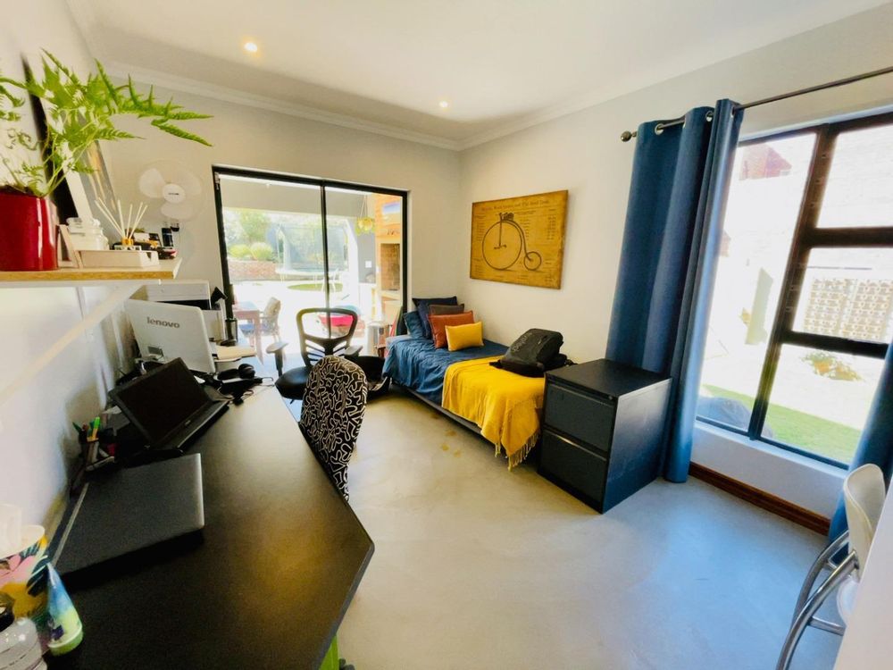 A massive family room with a built-in braai and bar area gives you that extra entertainment space and leads to a covered patio, overlooking the garden and pool.