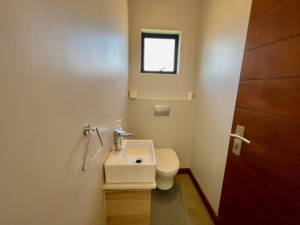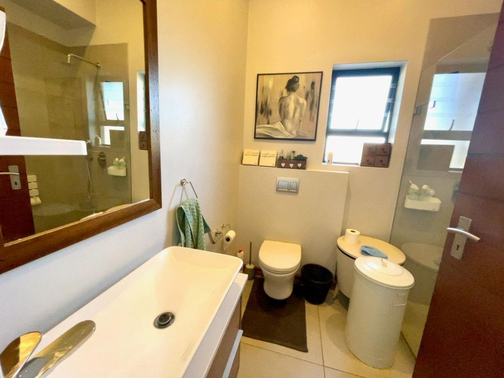 The ground floor opens up with a sunny double volume entrance hall, leading to a formal lounge, open plan with a dining room and contemporary kitchen. There is a guest toilet with shower and a generous guest wing including a lounge, bedroom and own bathroom with shower. The guest wing has a separate entrance and is wheel chair friendly, making it ideal for elderly family members living with you, or for a rental income opportunity.