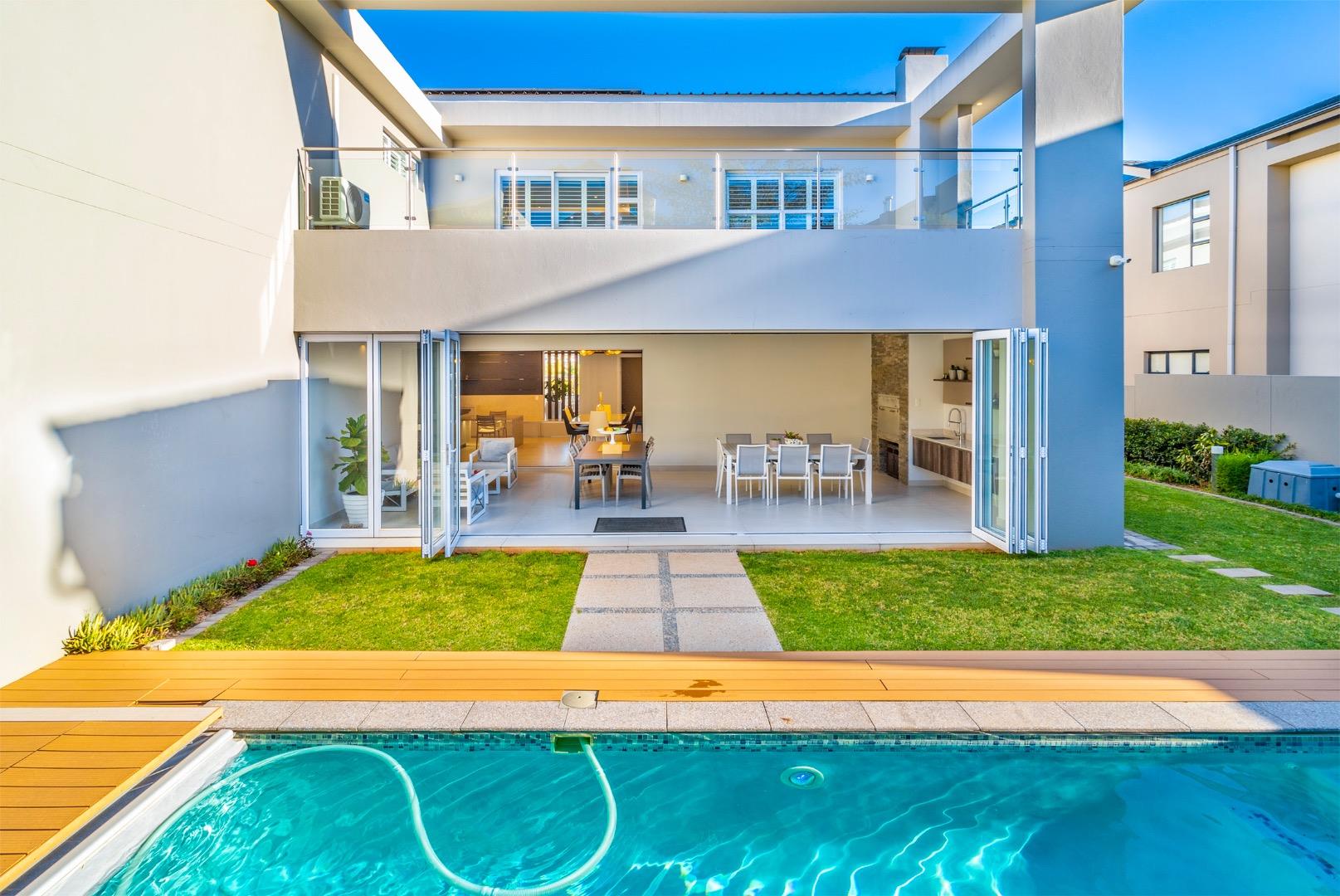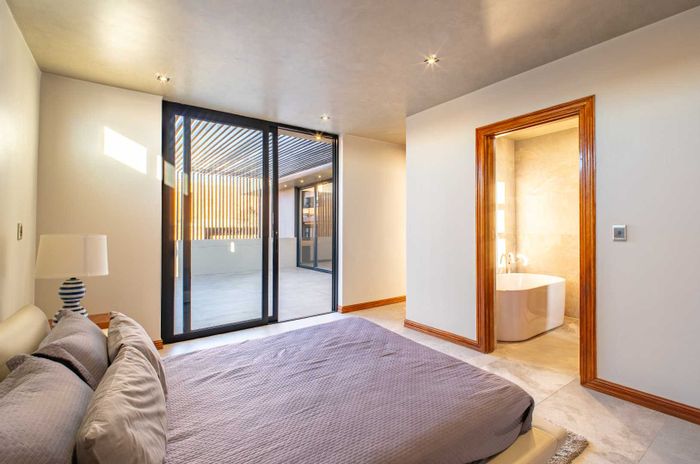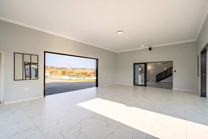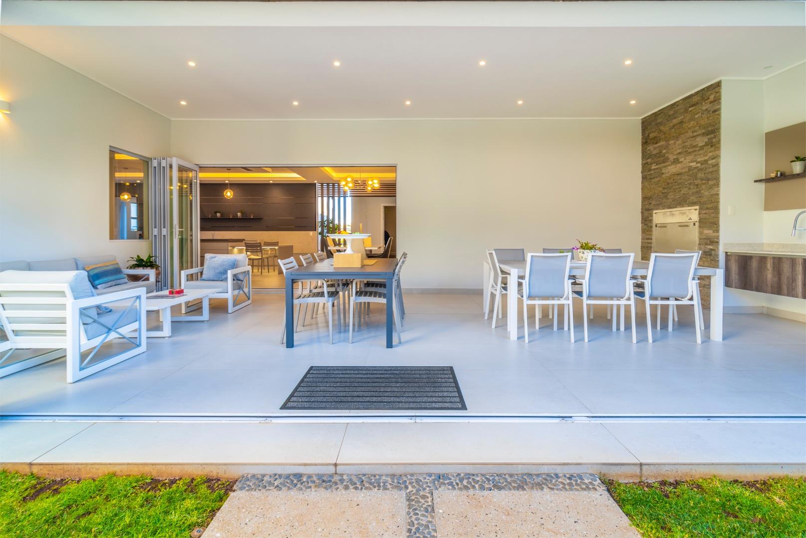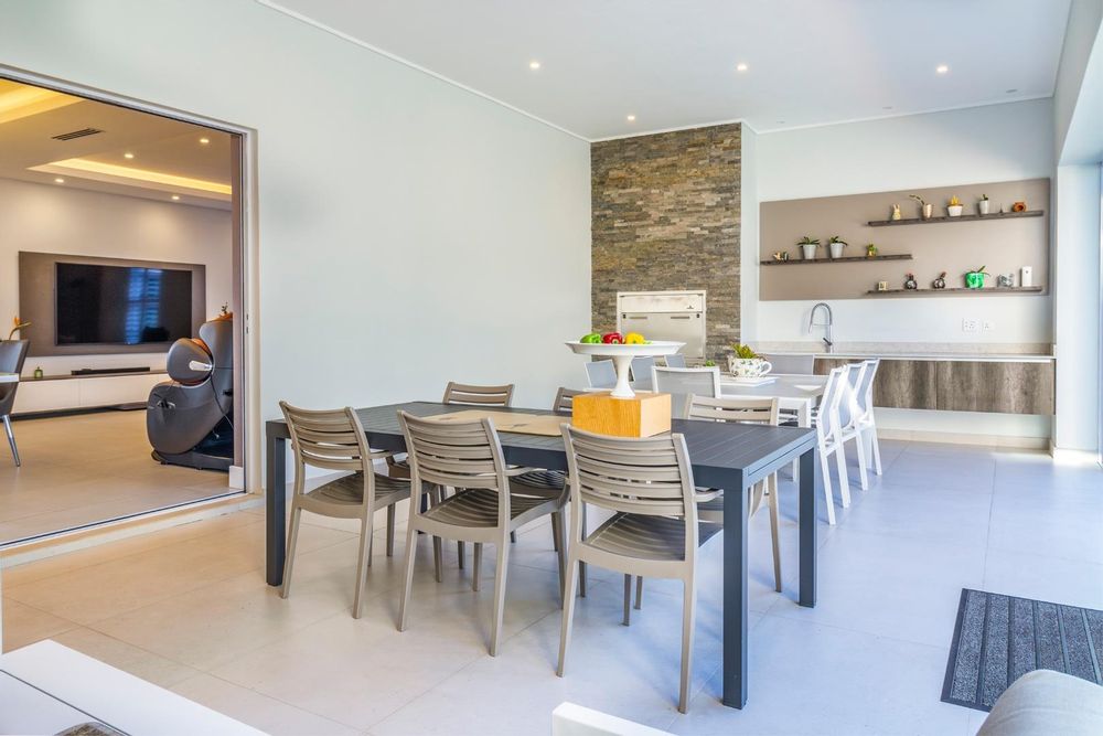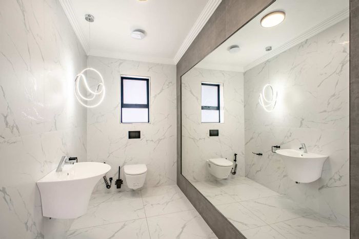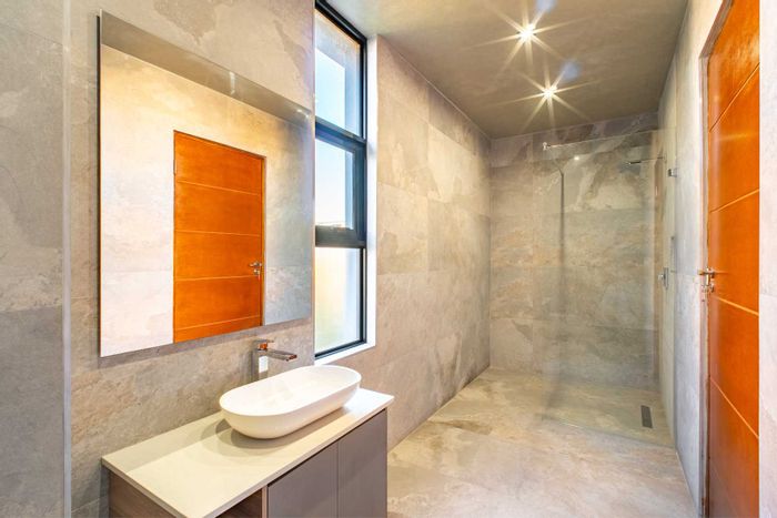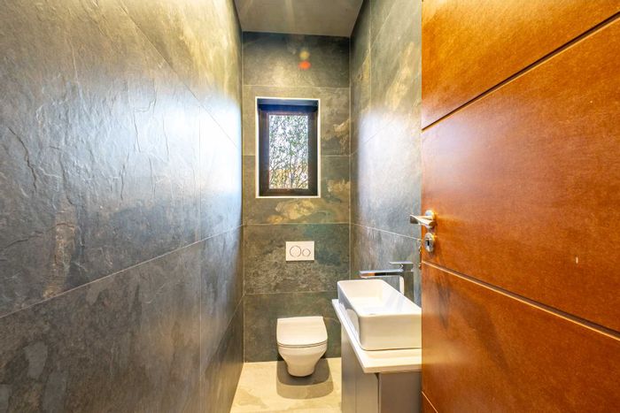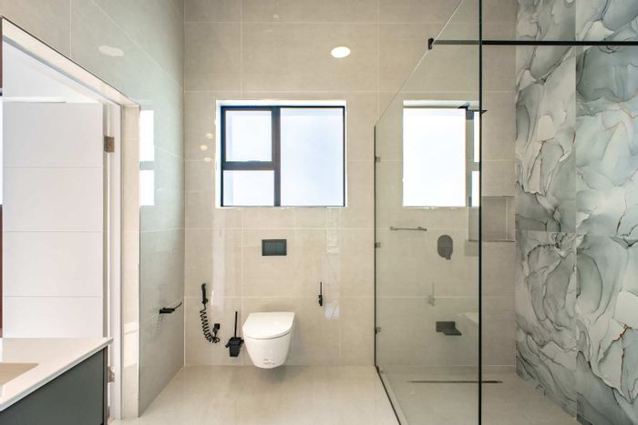 Three massive balconies, matching the size of the ground floor patio, invite you to savor the stunning views and create unforgettable memories. Antibacterial seats add a touch of refinement and hygiene, ensuring comfort at every turn. Additionally, three solar geysers contribute to the home's energy efficiency.