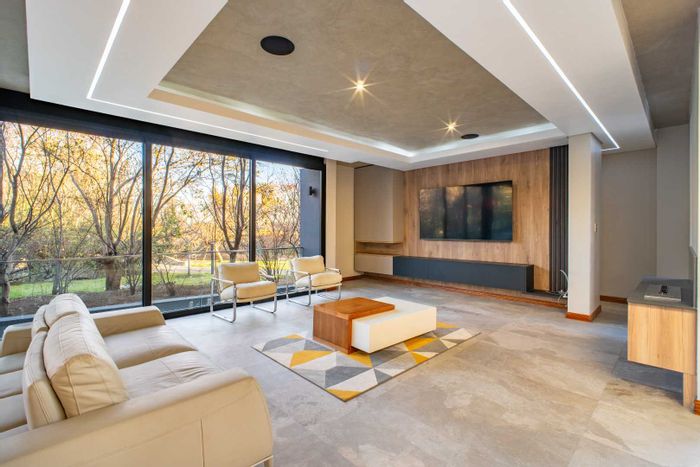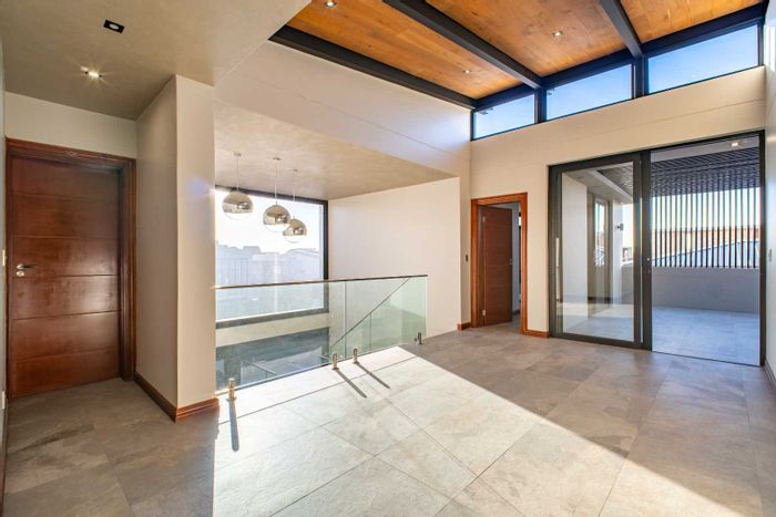 As you ascend to the upper level, a pyjama lounge offers a cozy retreat for relaxation and intimate gatherings. The solid doors throughout the home exude elegance and durability, while the massive office space upstairs caters to your professional needs. Step onto the massive balcony and be greeted by breathtaking views of the estate, a perfect backdrop for moments of tranquility.