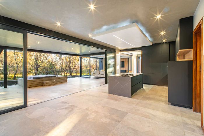 Step outside and be greeted by a sprawling patio that can be opened or enclosed, allowing you to enjoy the serene surroundings year-round. The pool, measuring an impressive 7x3.5 meters and featuring a beautiful decking area, becomes a haven for relaxation and entertainment. A built-in cover ensures convenience and safety, while the gas braai beckons you to indulge in outdoor culinary delights. Blue Line cabinets provide ample storage for all your outdoor needs.
