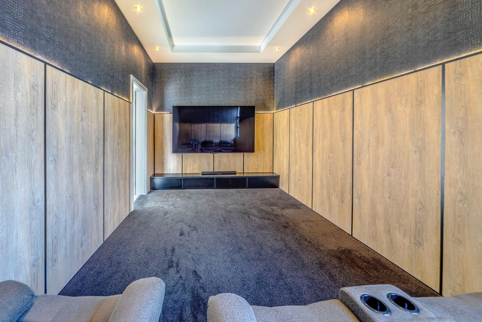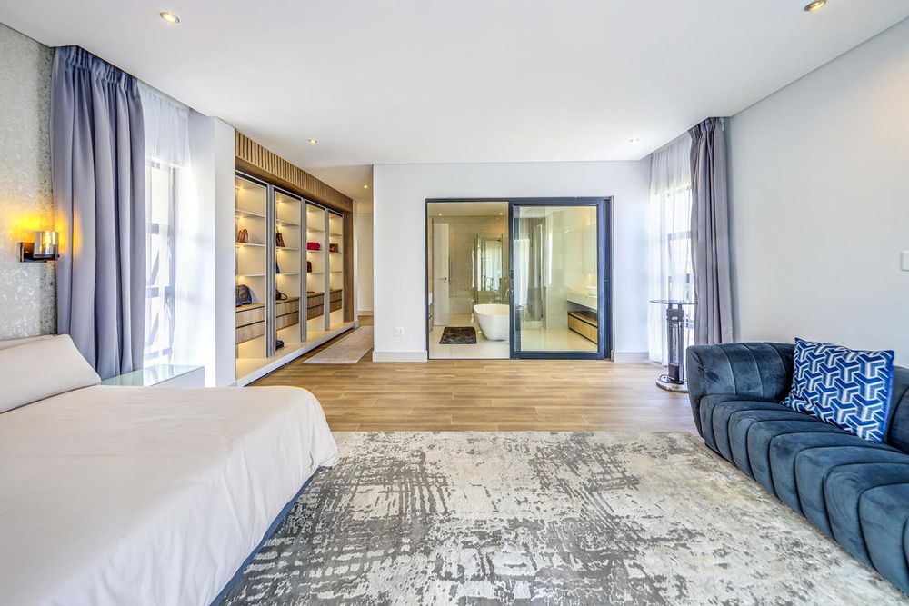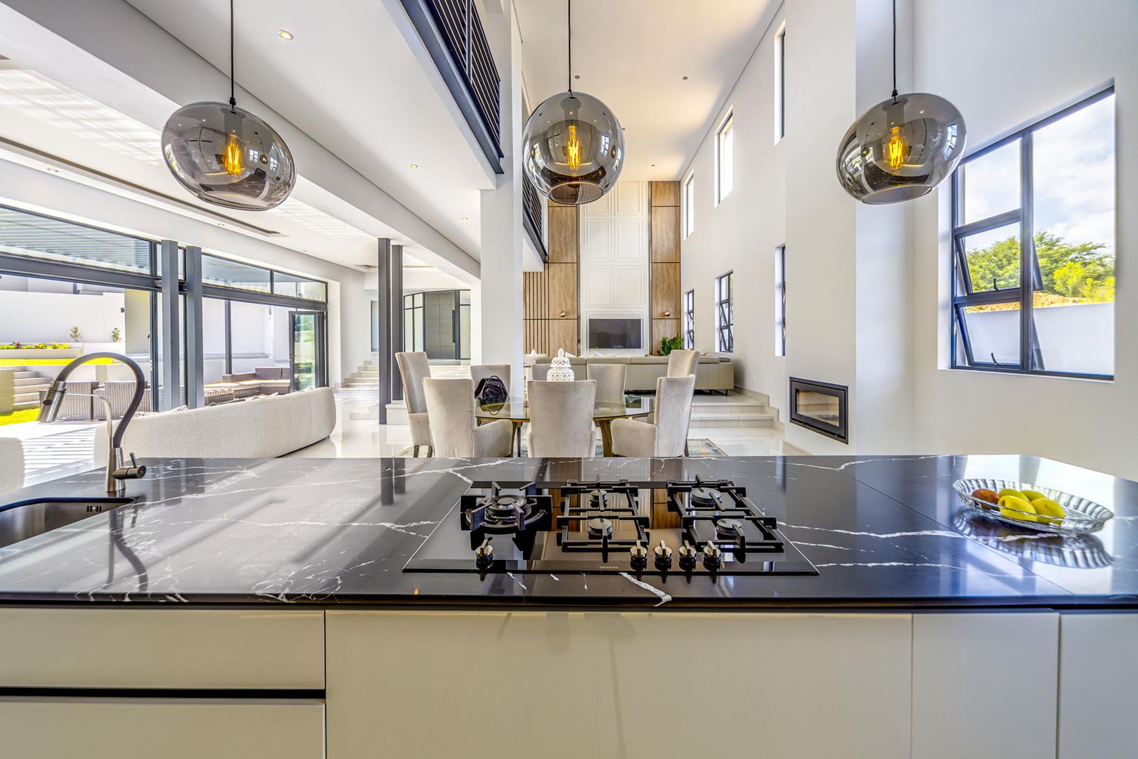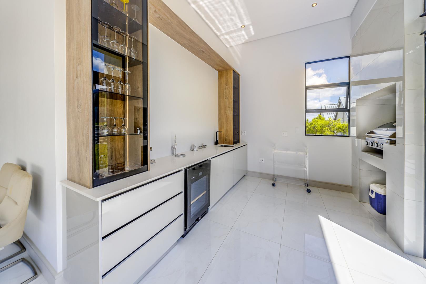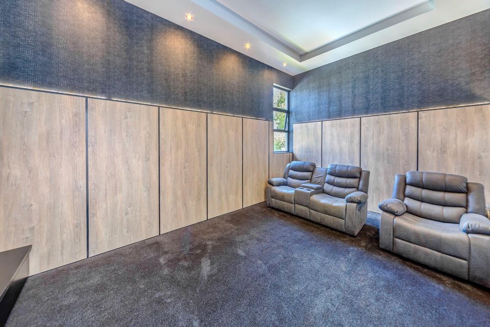 Nestled within the prestigious Waterfall Country Estate, Gate 2, this exquisite residence epitomizes luxury living at its finest. As you step through the grand entrance hall, you are welcomed into a world of unmatched elegance and sophistication. The heart of this home features a cozy TV lounge, a dining room adorned with a wood-burning fireplace for intimate gatherings, and an entertainment room equipped with a built-in braai, stack doors, and a sink, perfect for hosting lavish parties. Movie enthusiasts will revel in the state-of-the-art cinema room.