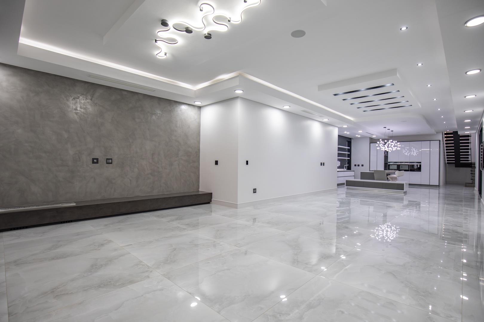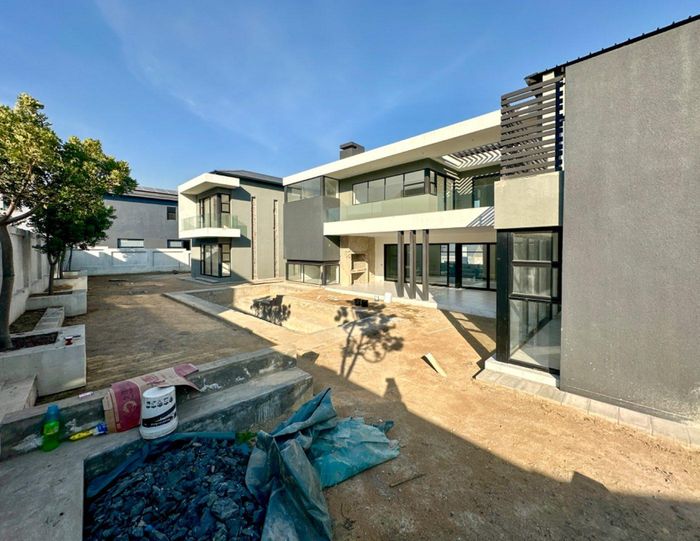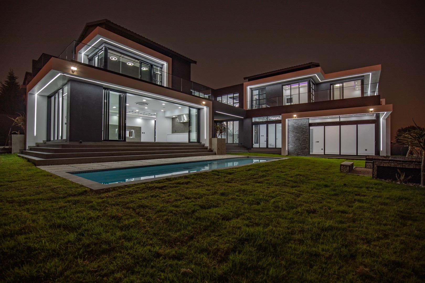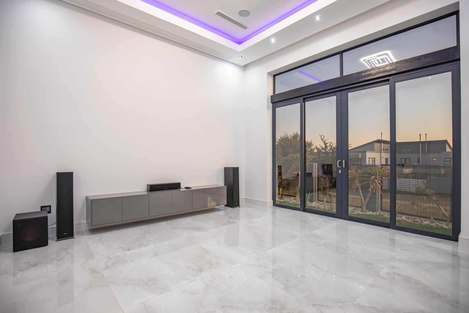 Functionality is prioritized with a borehole complete with storage tanks and a purification system supplying water for the entire house. A Control4 home automation system manages security, lighting, and entertainment, complemented by a state-of-the-art security setup with 12 Wi-Fi cameras and an alarm system. Backup power is ensured with 4.5kW solar panels and an 8kW inverter for peace of mind.