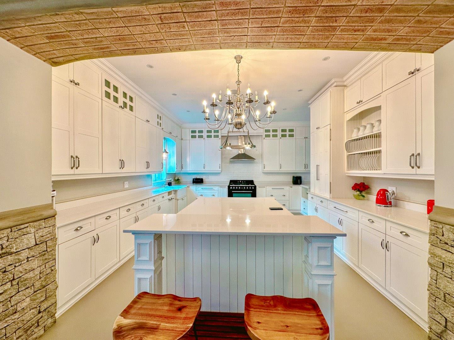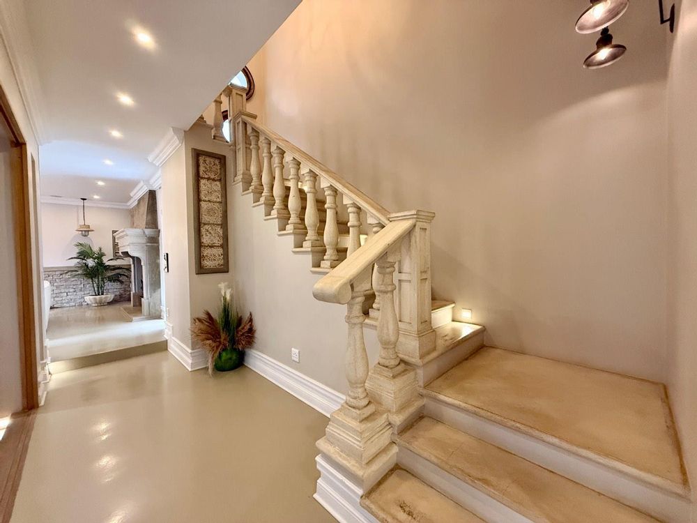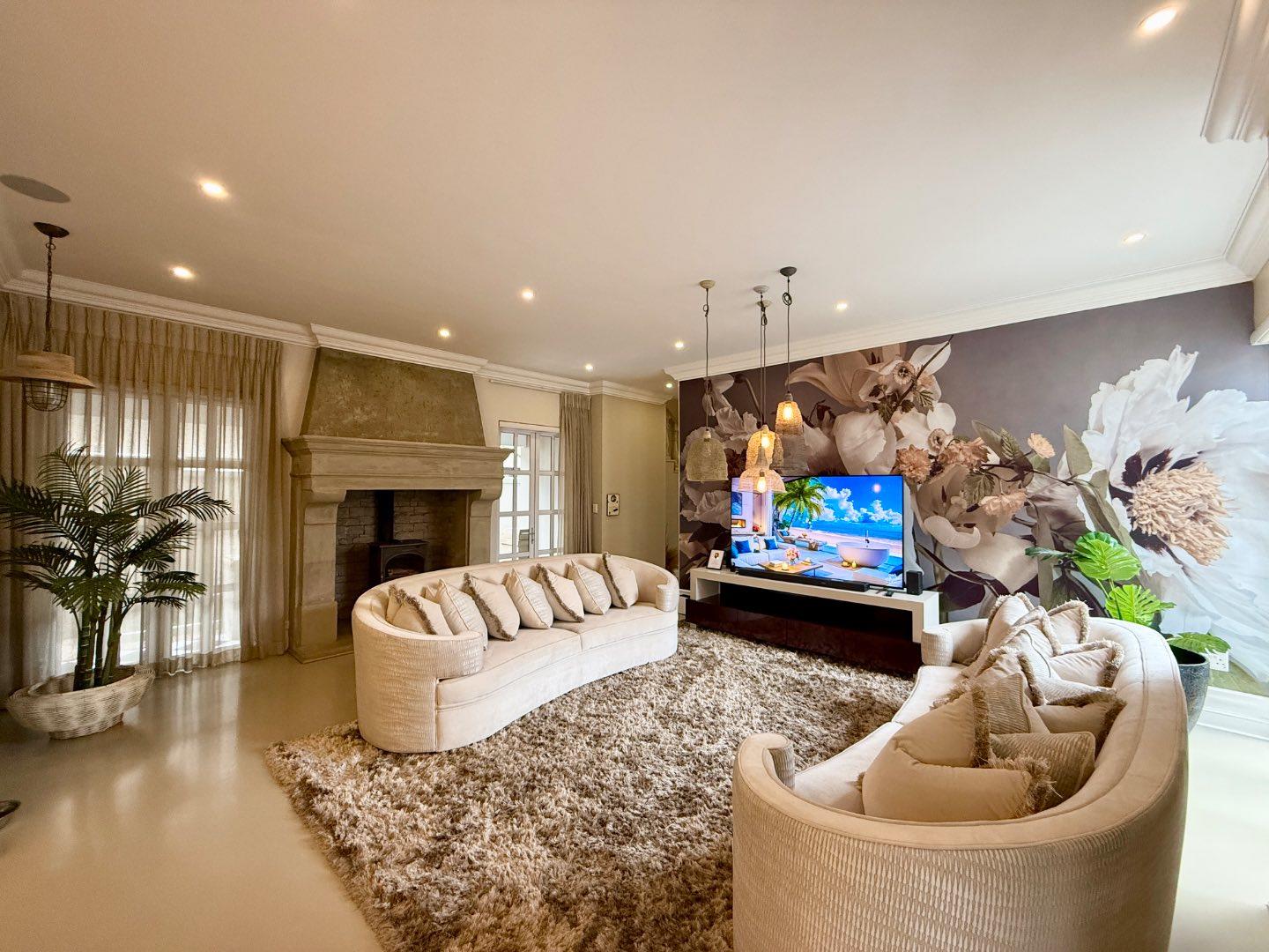 This magnificent home in Waterfall Country Estate has been fitted with antique pieces found throughout the home, including gates, doors, inlaid metal decor, hand-made tiles, and porthole windows, among others. The 13 KVA gas generator, with automated switch gear, powers the entire home, and the built-in speakers, outdoor speakers, and TV points in all rooms, provide for a truly immersive audio experience. The vegetable garden and front door gate camera intercom complete this truly distinctive home, which awaits a family who appreciates the finer things in life.