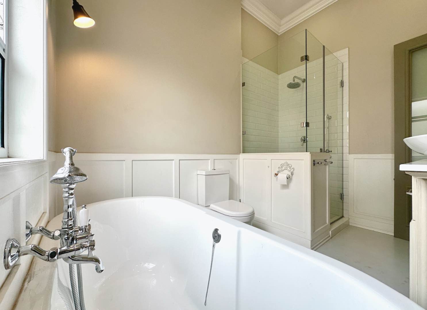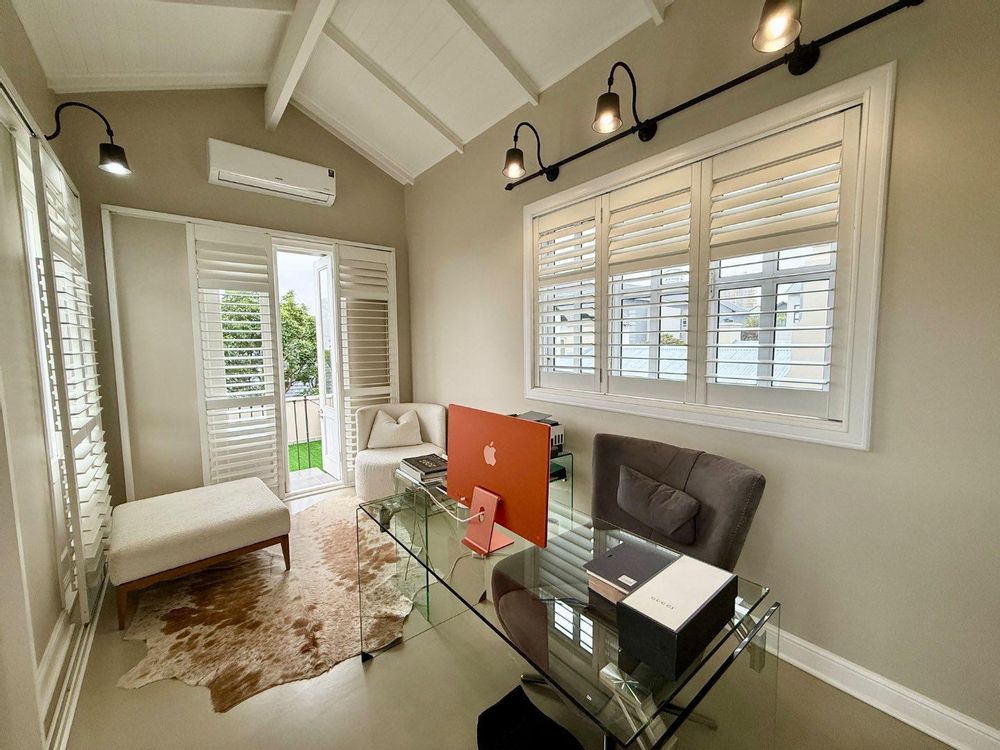 Upstairs, the bedrooms are lavish and indulgent, with the second bedroom overlooking the garden and the third bedroom boasting a beautiful full bathroom and a loft room that serves as an air-conditioned office with a kitchen. The master suite is a veritable palace, with a spacious dressing room area, air-conditioned study with plantation shutter sliders to a balcony, and an enormous sunset deck overlooking the garage. The closed combustion fireplace and air conditioning ensure maximum comfort all year round.