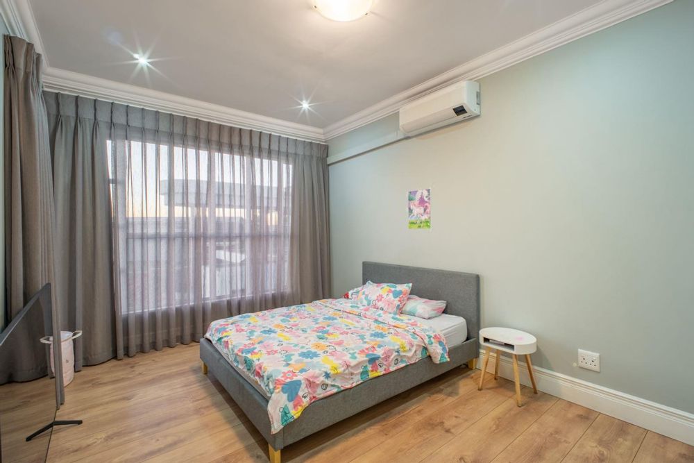 Upstairs, you'll find three bedrooms. Bedroom two has a full bathroom, while bedroom three shares access to this bathroom. The main bedroom is spacious and luxurious, featuring air conditioning, a walk-in closet, a private balcony, and a full en suite bathroom with a double vanity.