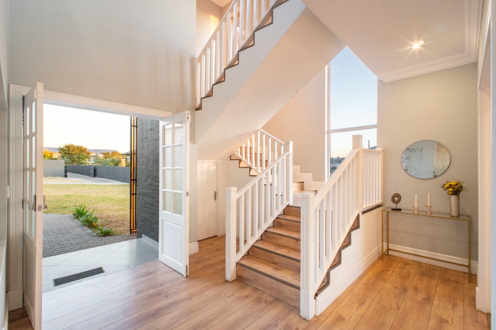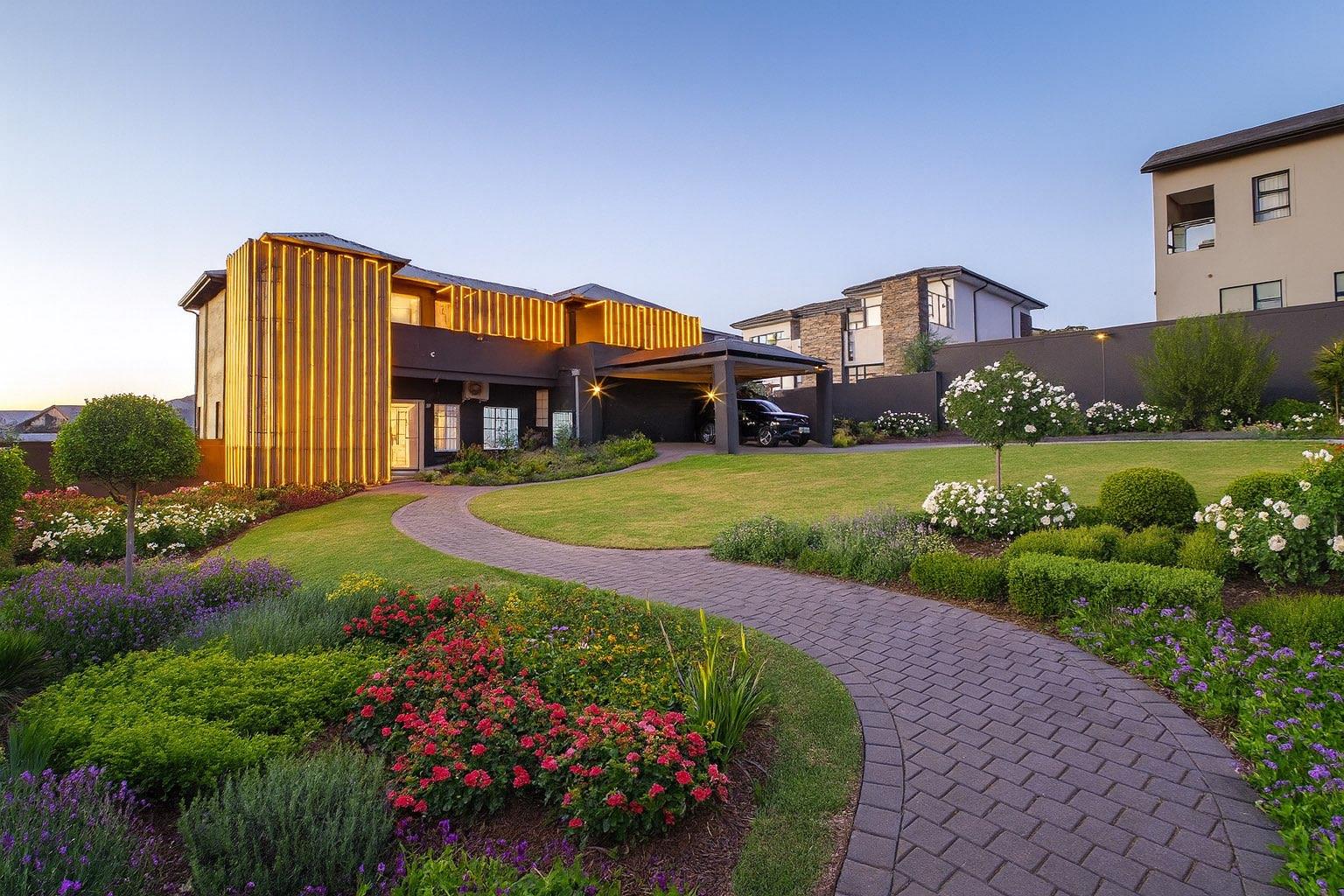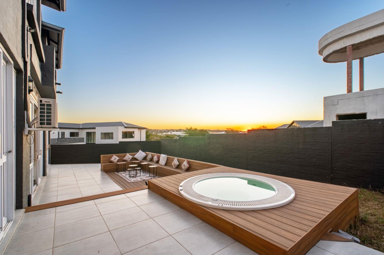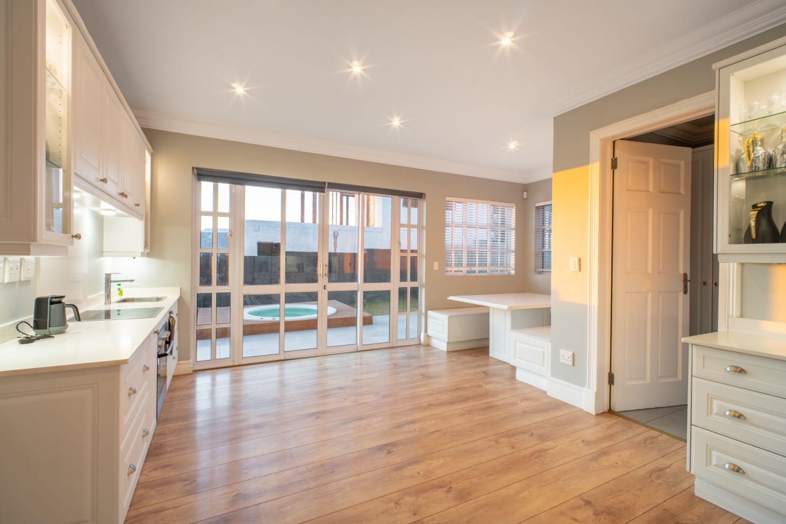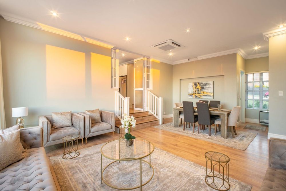 This exceptional home is set on the second biggest stand in Waterfall Country Estate, offering expansive living and entertainment spaces both inside and out. As you enter, you're greeted by a welcoming entrance hall that flows into a formal lounge, featuring sliding doors that can close off the space for privacy, as well as doors opening out to the entertainment area. The room is fitted with an air conditioner for year-round comfort. A second lounge also opens up to the entertainment space, creating a seamless flow throughout the living areas. The dining room connects to a well-appointed kitchen with an electric stove and casual seating area, complemented by a separate scullery with a gas stove. The kitchen also opens directly to the entertainment area, making it ideal for hosting.