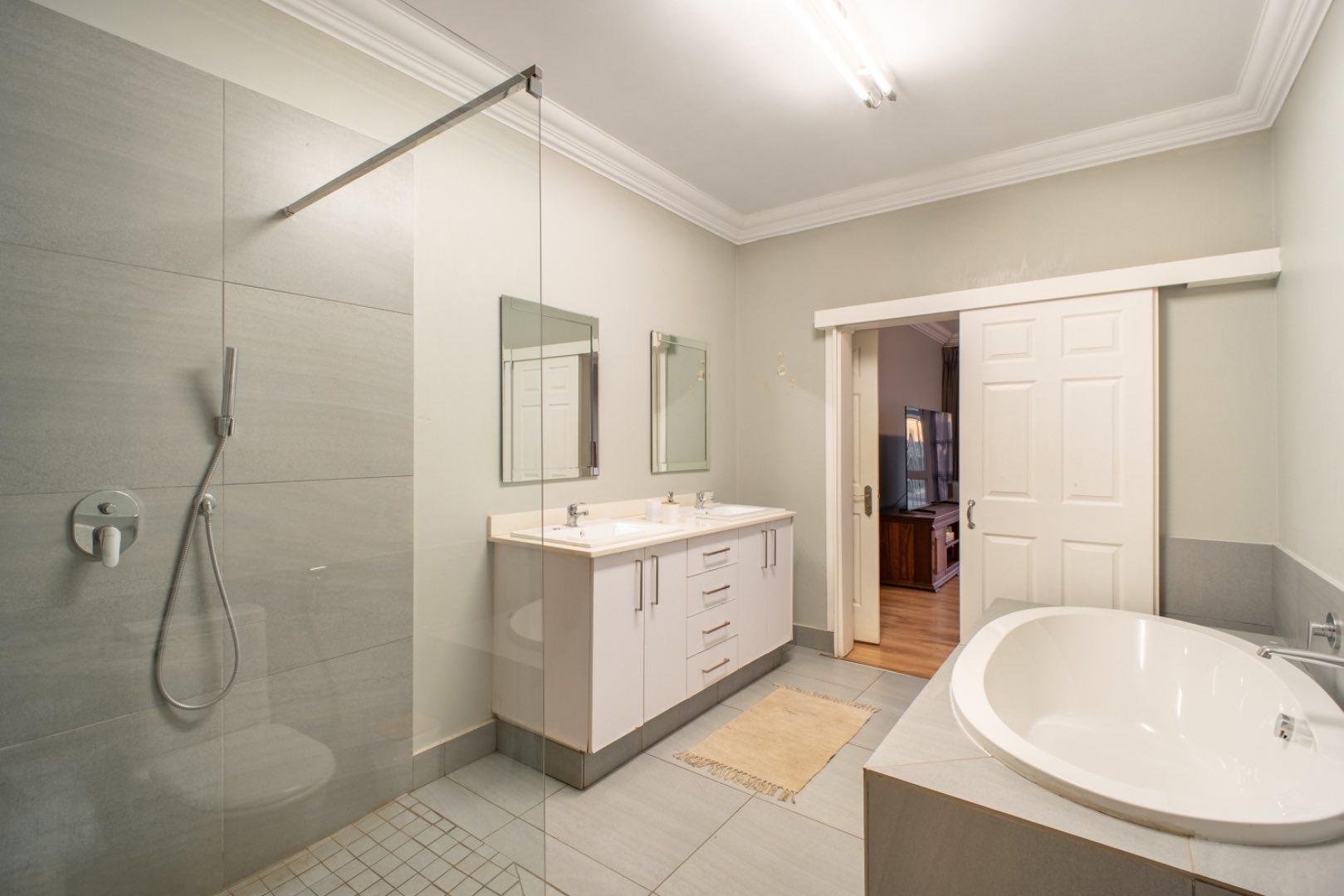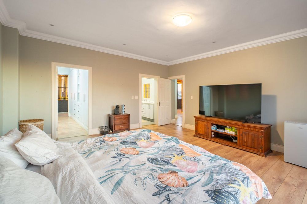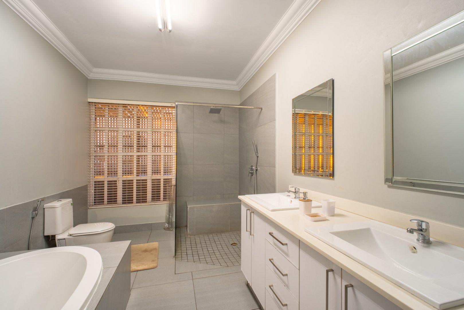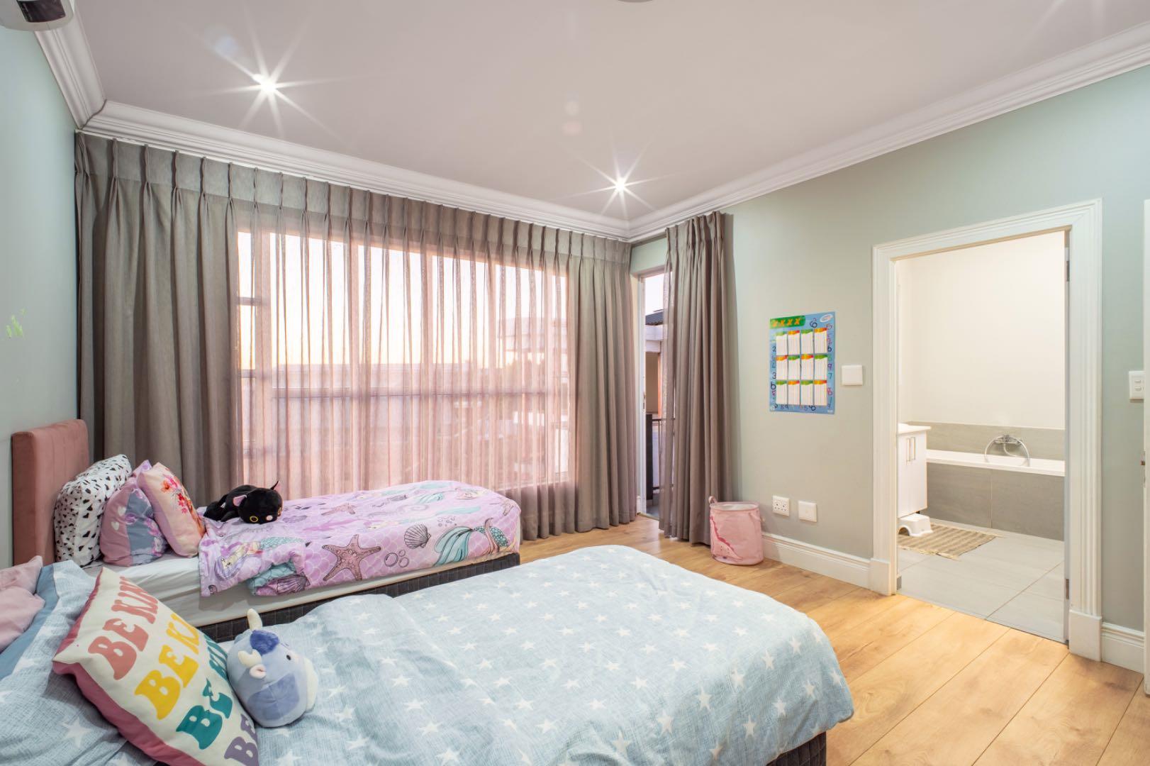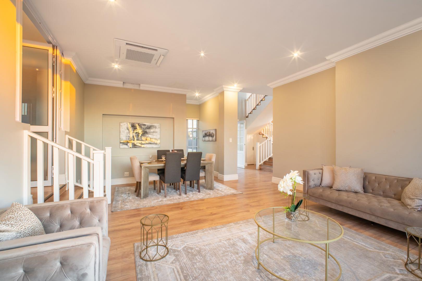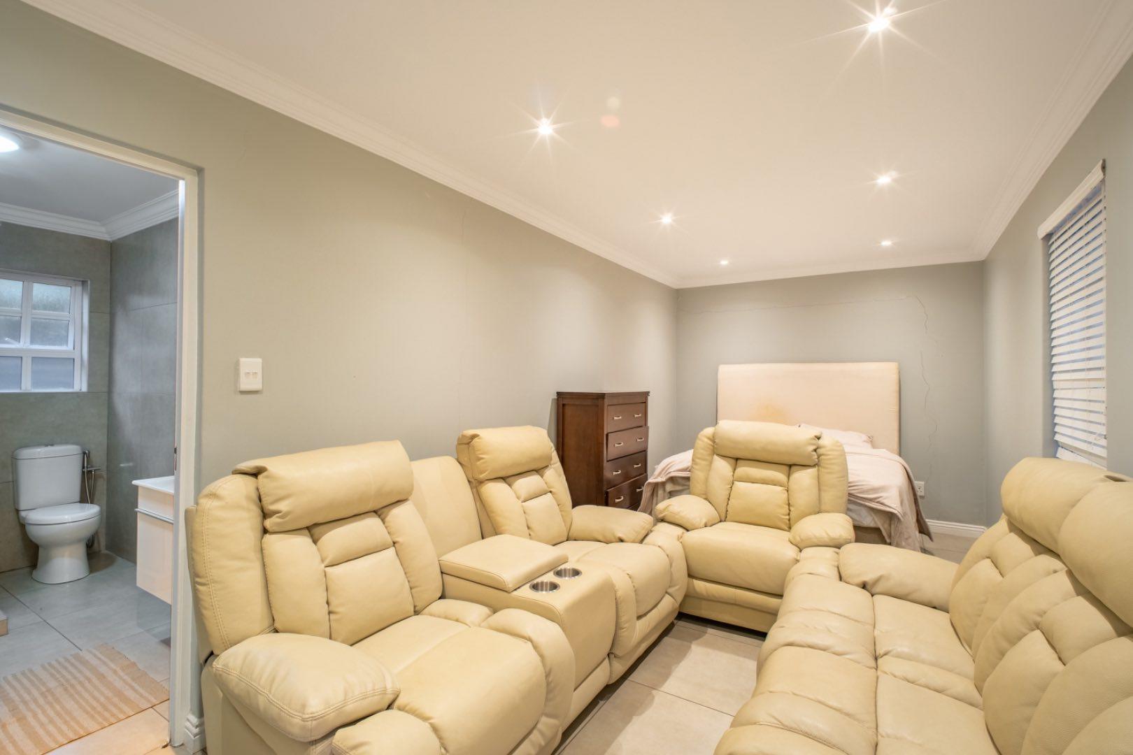 This exceptional home is set on the second biggest stand in Waterfall Country Estate, offering expansive living and entertainment spaces both inside and out. As you enter, you're greeted by a welcoming entrance hall that flows into a formal lounge, featuring sliding doors that can close off the space for privacy, as well as doors opening out to the entertainment area. The room is fitted with an air conditioner for year-round comfort. A second lounge also opens up to the entertainment space, creating a seamless flow throughout the living areas. The dining room connects to a well-appointed kitchen with an electric stove and casual seating area, complemented by a separate scullery with a gas stove. The kitchen also opens directly to the entertainment area, making it ideal for hosting.