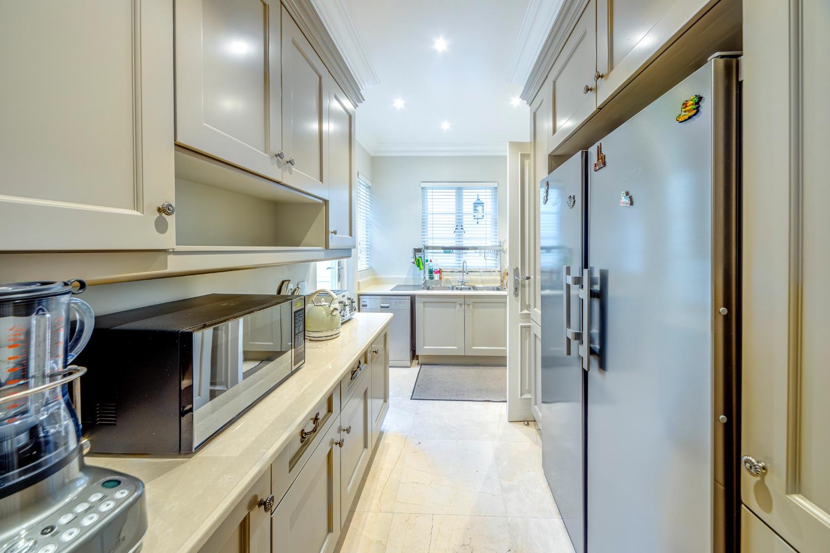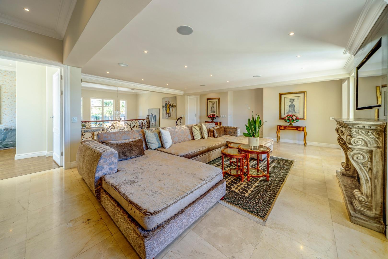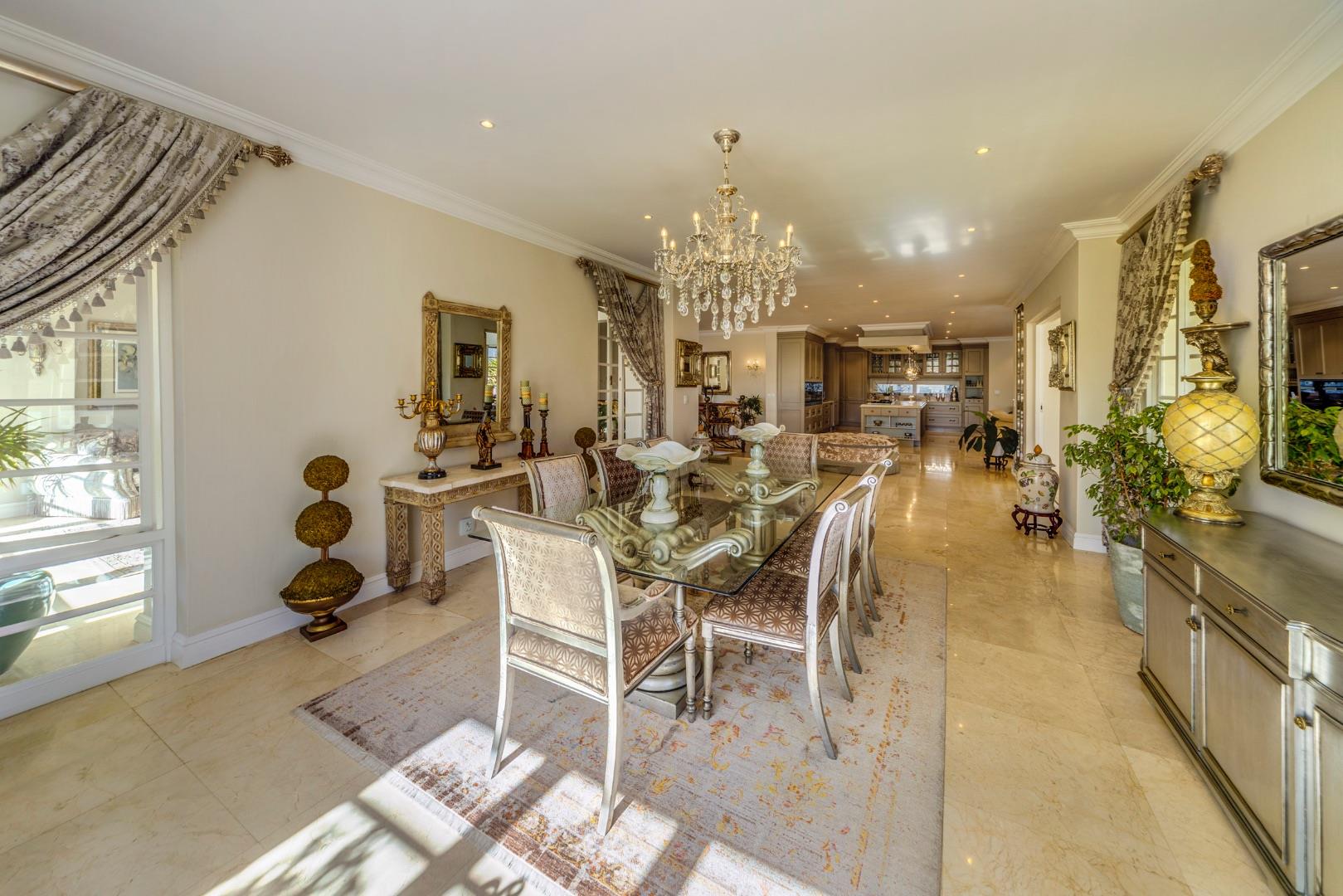 The formal living spaces include two elegant lounges; one with a gas fireplace, perfect for cozy evenings, and another that opens up to the beautifully garden, providing a seamless indoor-outdoor living experience. The dining room is ideal for hosting dinner parties and gatherings.