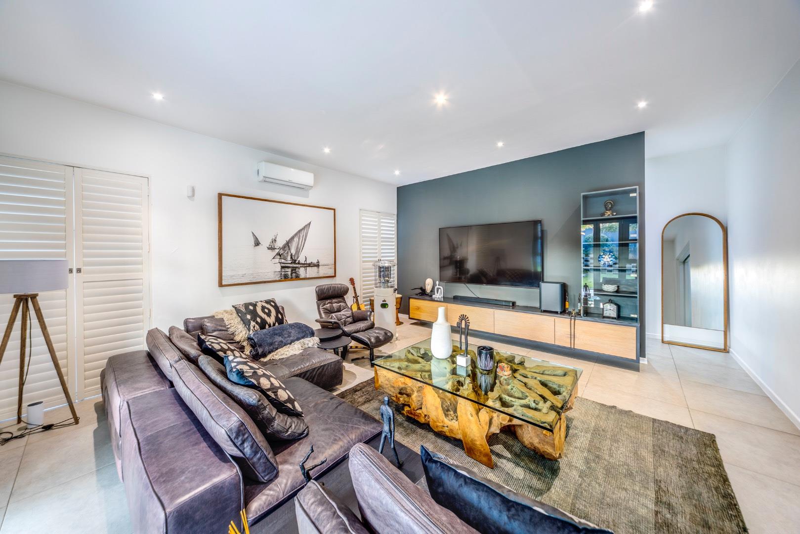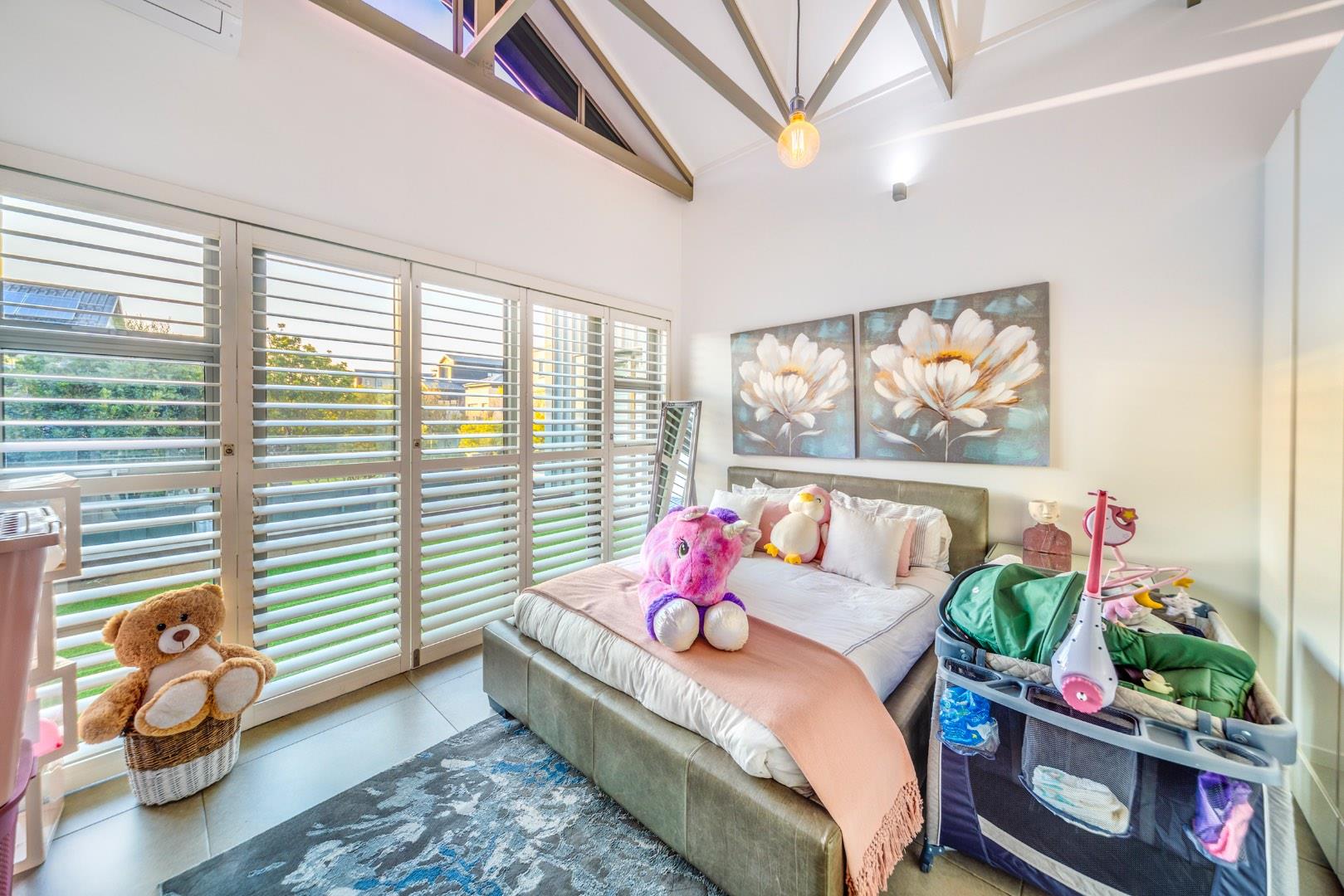 Upon entering, you are greeted by a grand entrance hall that sets the tone for the elegance found throughout the home. The dining room, perfect for both intimate dinners and grand celebrations, leads to the formal lounge equipped with air conditioning, providing a comfortable space for relaxation. The open-plan kitchen is a chef’s dream, featuring Siemens appliances, including a gas and electric stove, integrated fridge and freezer, coffee machine, microwave, and double oven. The kitchen is complemented by a separate scullery and a spacious walk-in pantry.