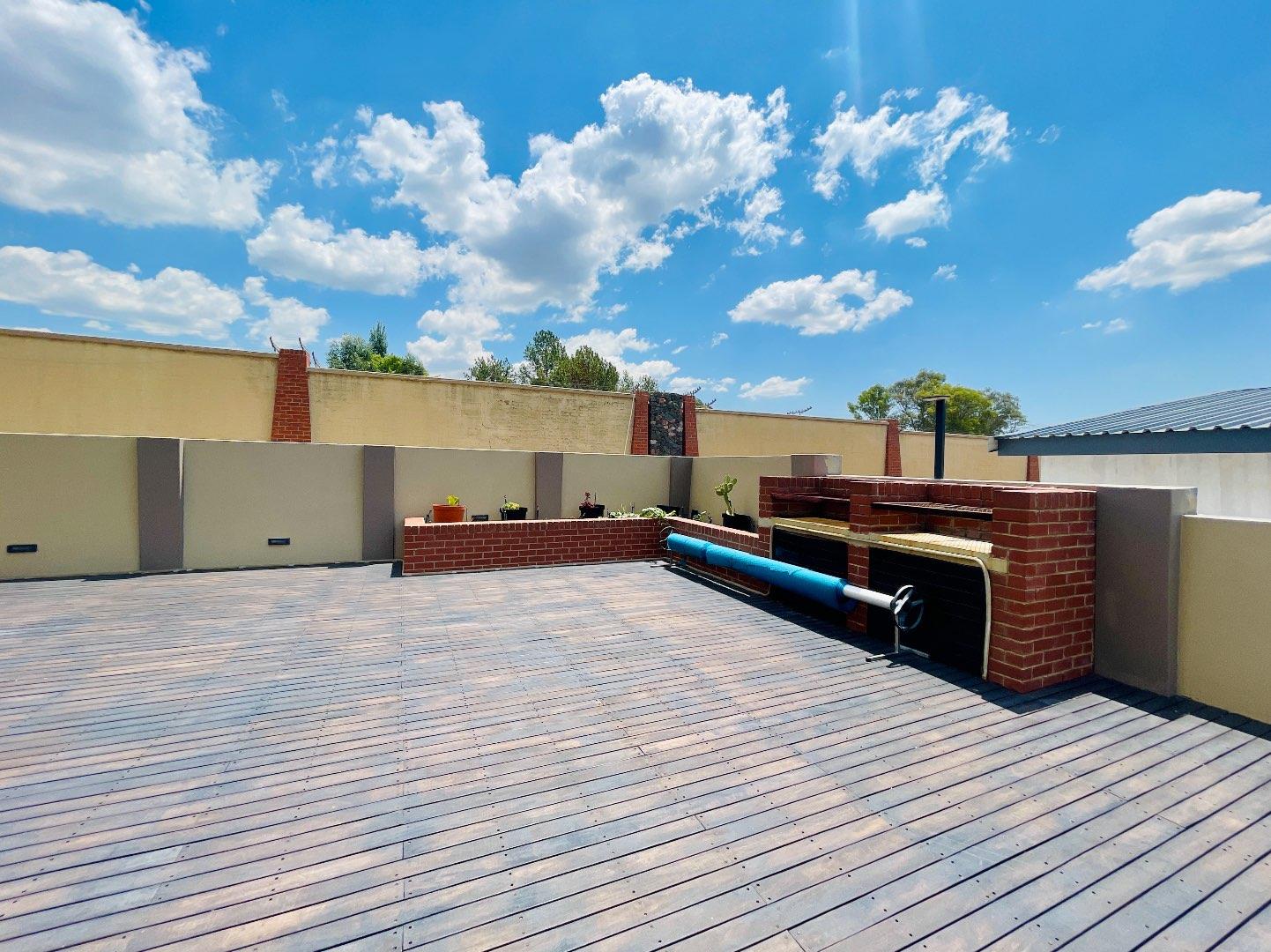 Your down stairs area also offers a built in and stack doors that open up to a covered patio with a built in braai which overlooks your garden and swimming pool, and another deck with another braai area.