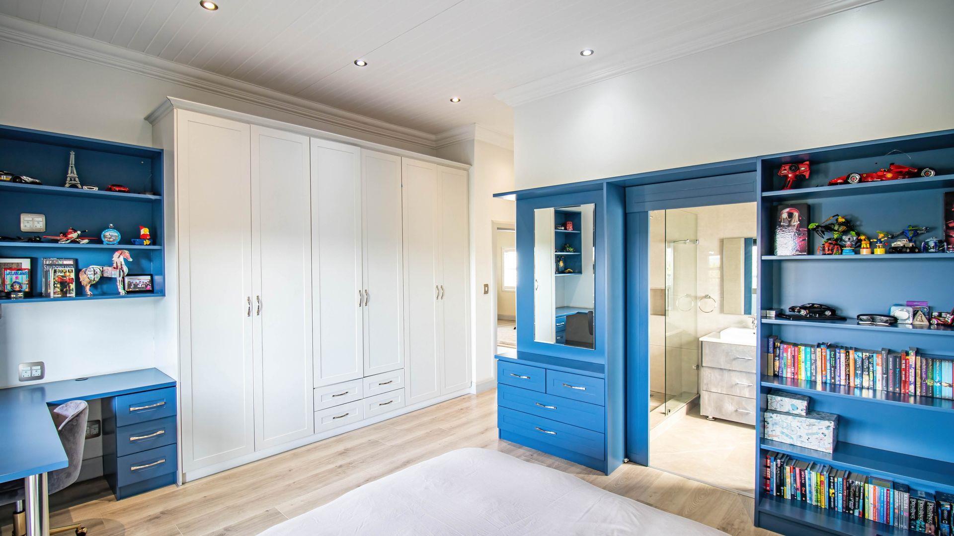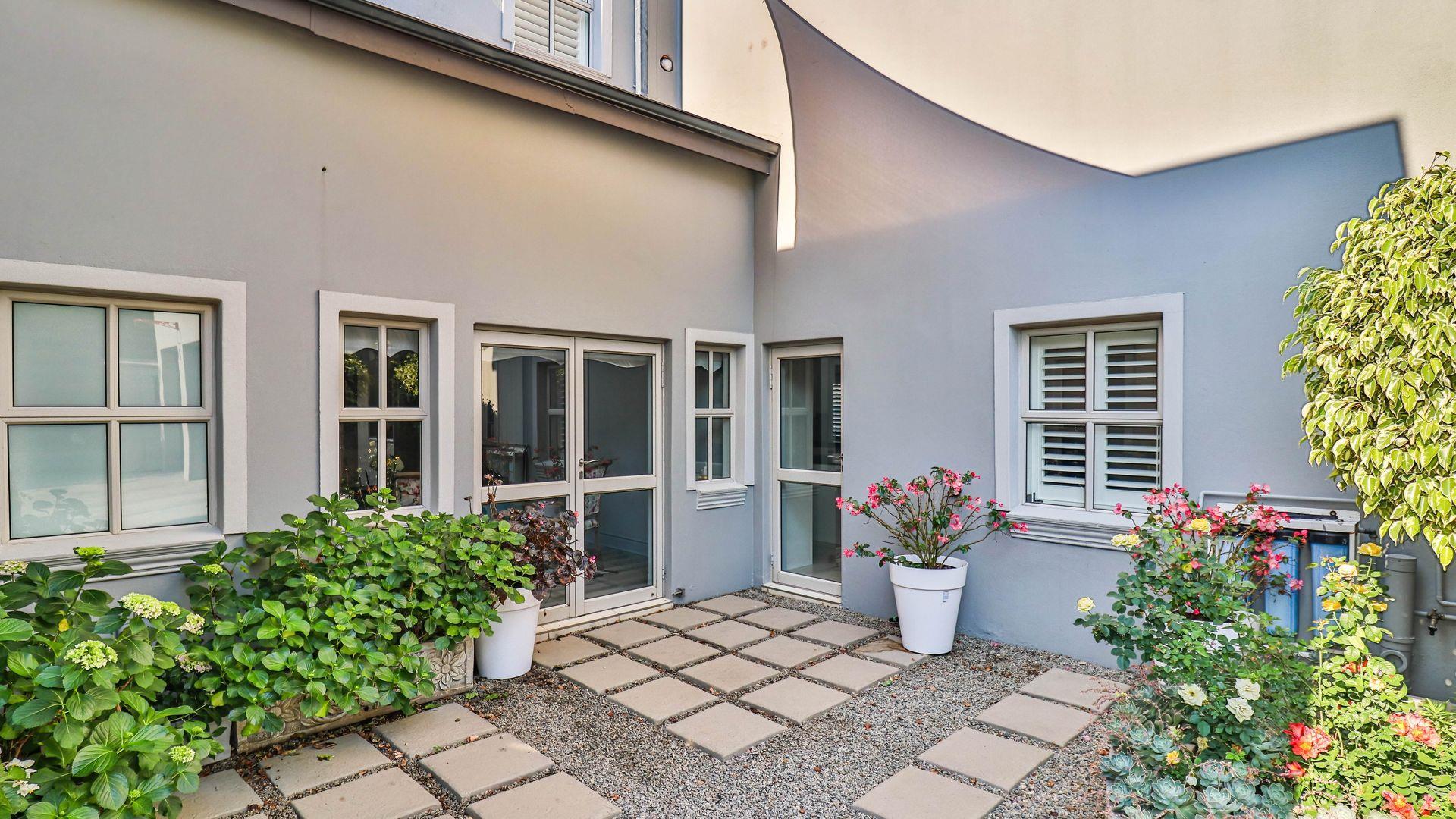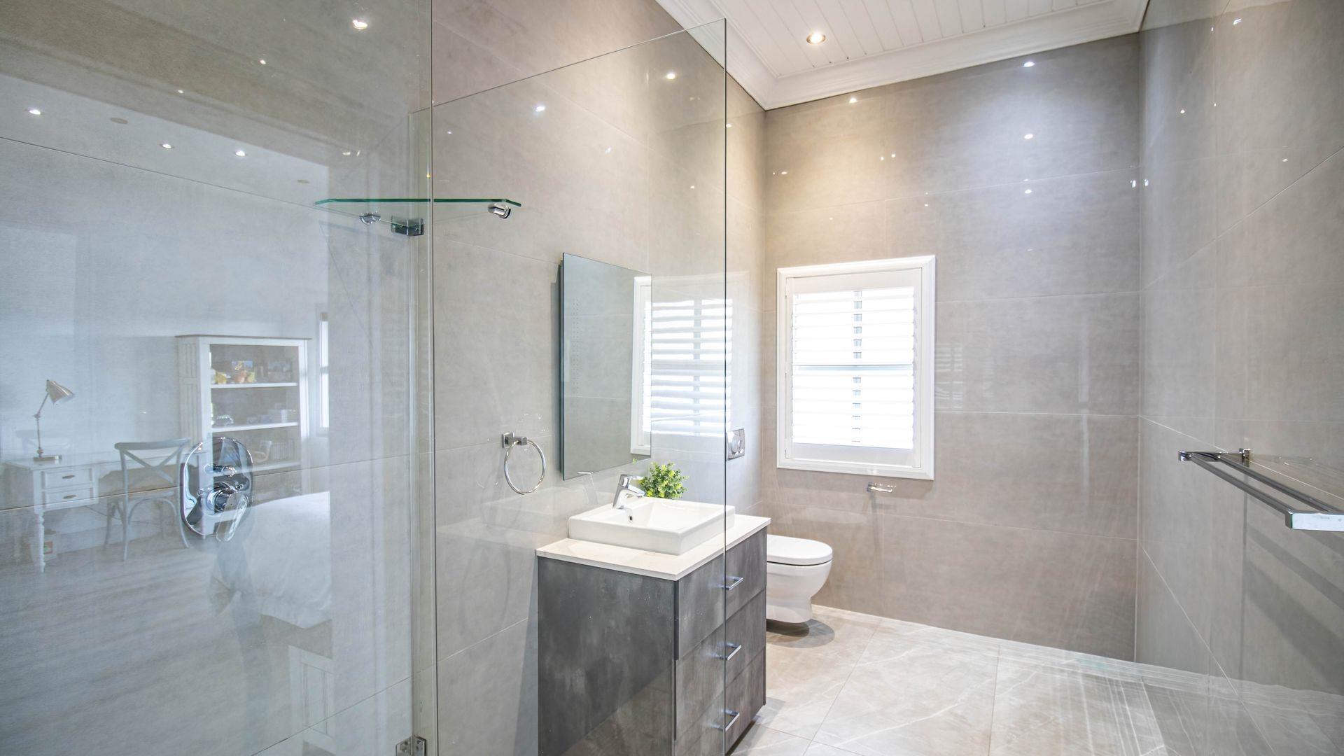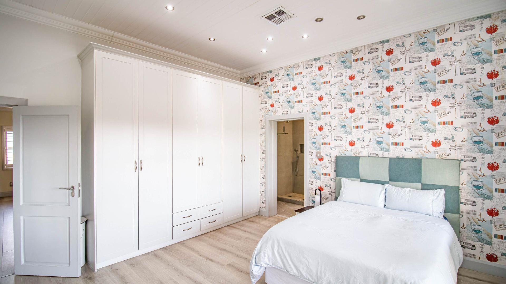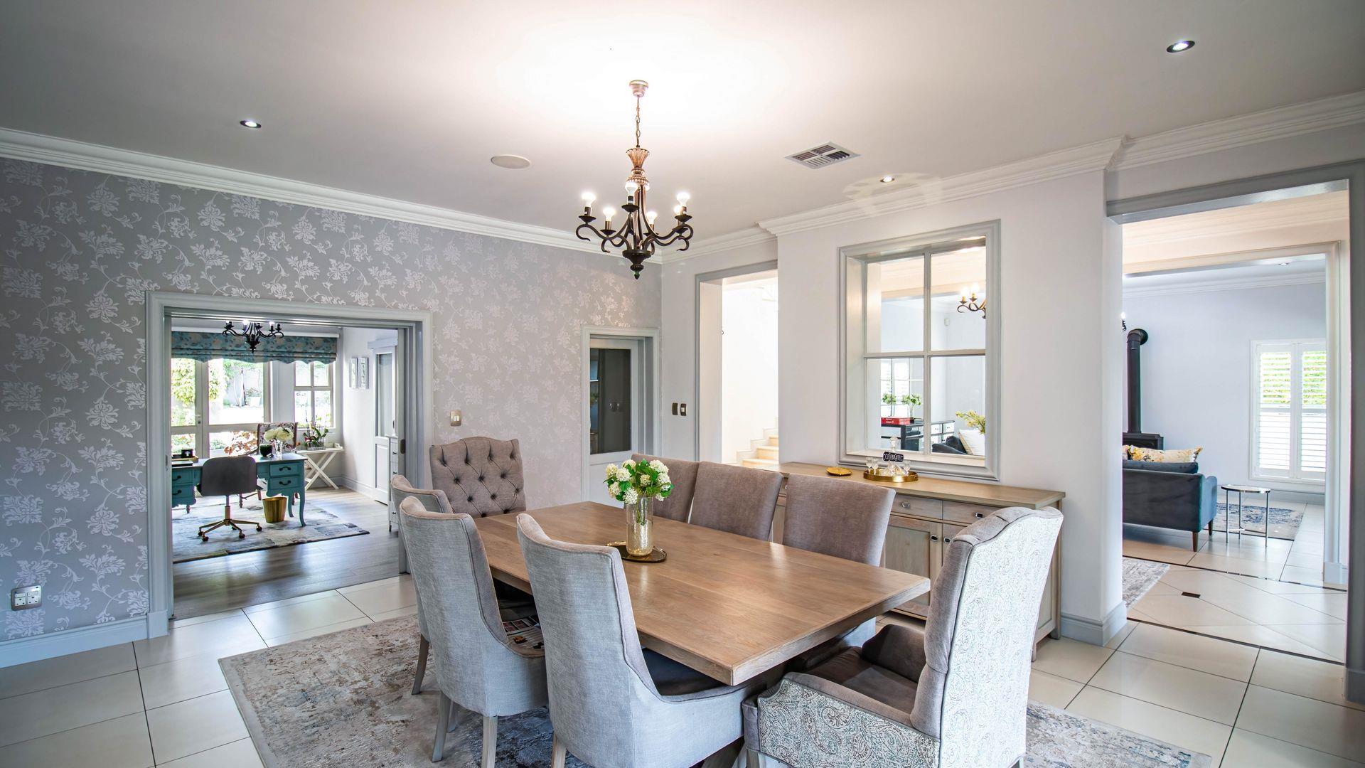 The expansive ground floor is perfectly suited to entertaining, with generous living, bar, and entertainment spaces opening seamlessly through stacking glass doors onto the landscaped garden, sun deck, and private heated swimming pool. This effortless indoor-outdoor flow allows for year-round enjoyment of the Highveld climate in a setting designed for both relaxation and hosting.