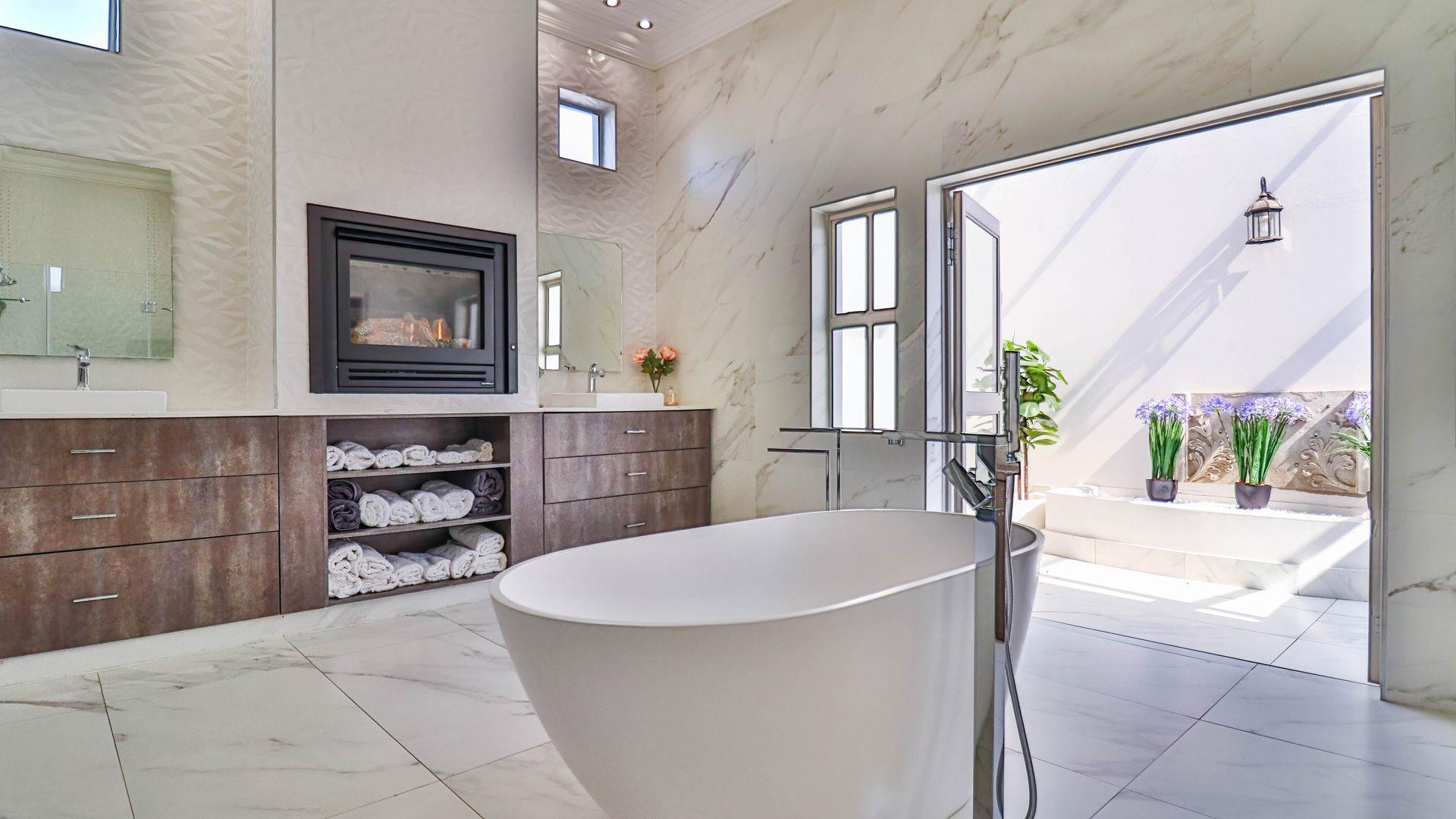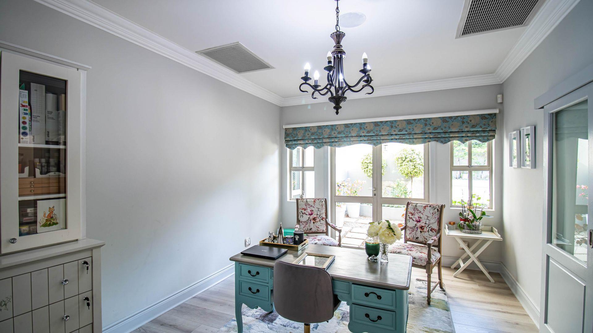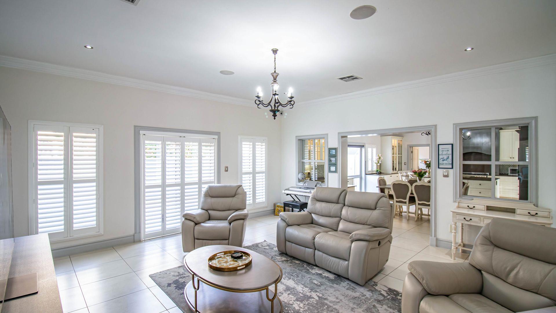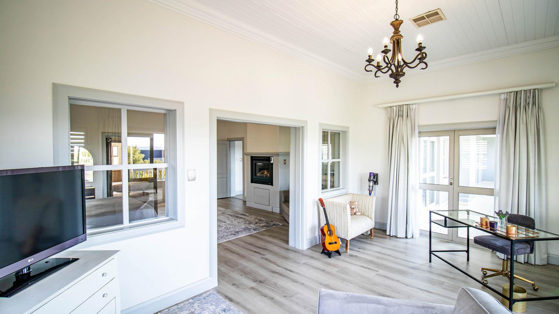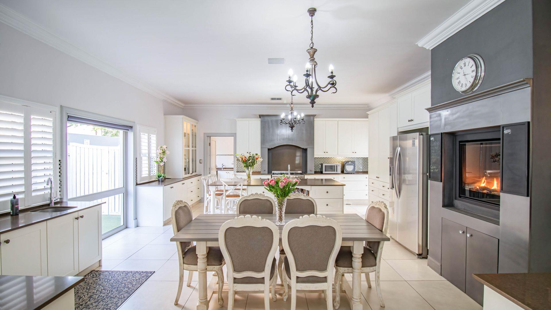 Designed for sophisticated family living and executive entertaining, the home features central air conditioning throughout, a built-in vacuum system, integrated speakers across most areas, and full backup power and water solutions. Warmth and ambience are provided by four closed-combustion gas fireplaces, complemented by a Morso wood-burning fireplace for cosy winter evenings. Luxaflex shutters, Duette blinds, and motorised roller blinds enhance the elegant aesthetic while offering privacy and comfort throughout the home.