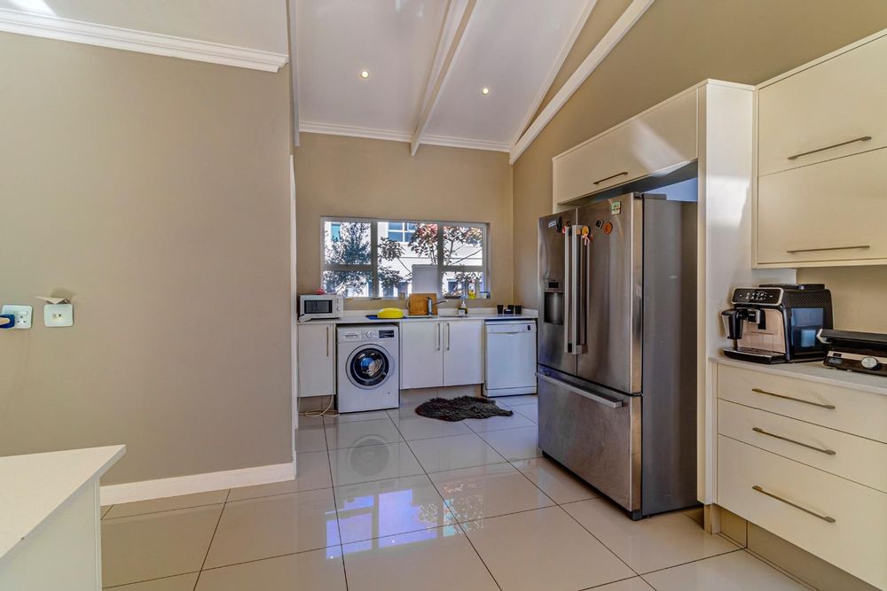The heart of the home lies within the open plan kitchen, a culinary masterpiece that is sure to delight even the most discerning of chefs. Adorned with a premium gas stove, this kitchen is a haven where culinary creations come to life. To ensure maximum functionality and maintain an uncluttered aesthetic, a separate scullery is thoughtfully incorporated, offering an ideal space for food preparation and additional storage.