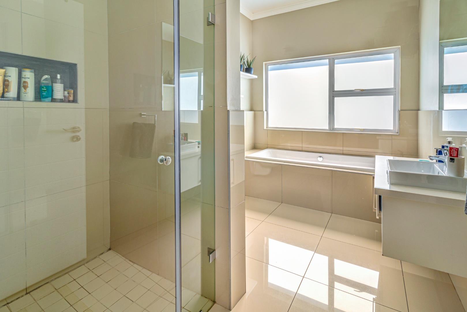 As you ascend the staircase to the upper level, you'll discover a tranquil haven consisting of four luxurious bedrooms. The master suite is a sanctuary of opulence, featuring a generously proportioned layout, built-in cupboards, and a lavish en-suite bathroom reminiscent of those found in the world's finest resorts. The second bedroom boasts its own en-suite bathroom with a rejuvenating shower, while the remaining two bedrooms share a beautifully appointed full bathroom.