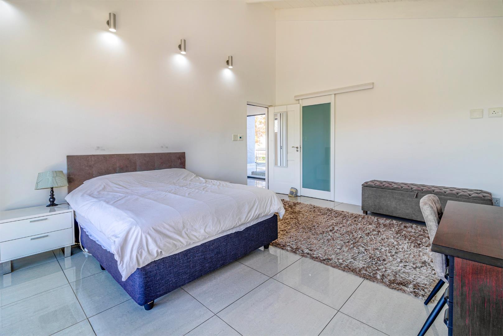 Downstairs, you'll discover a spacious bedroom complete with built-in cupboards and a full en-suite bathroom. This bedroom opens up to the beautiful garden, allowing for a tranquil and private retreat.